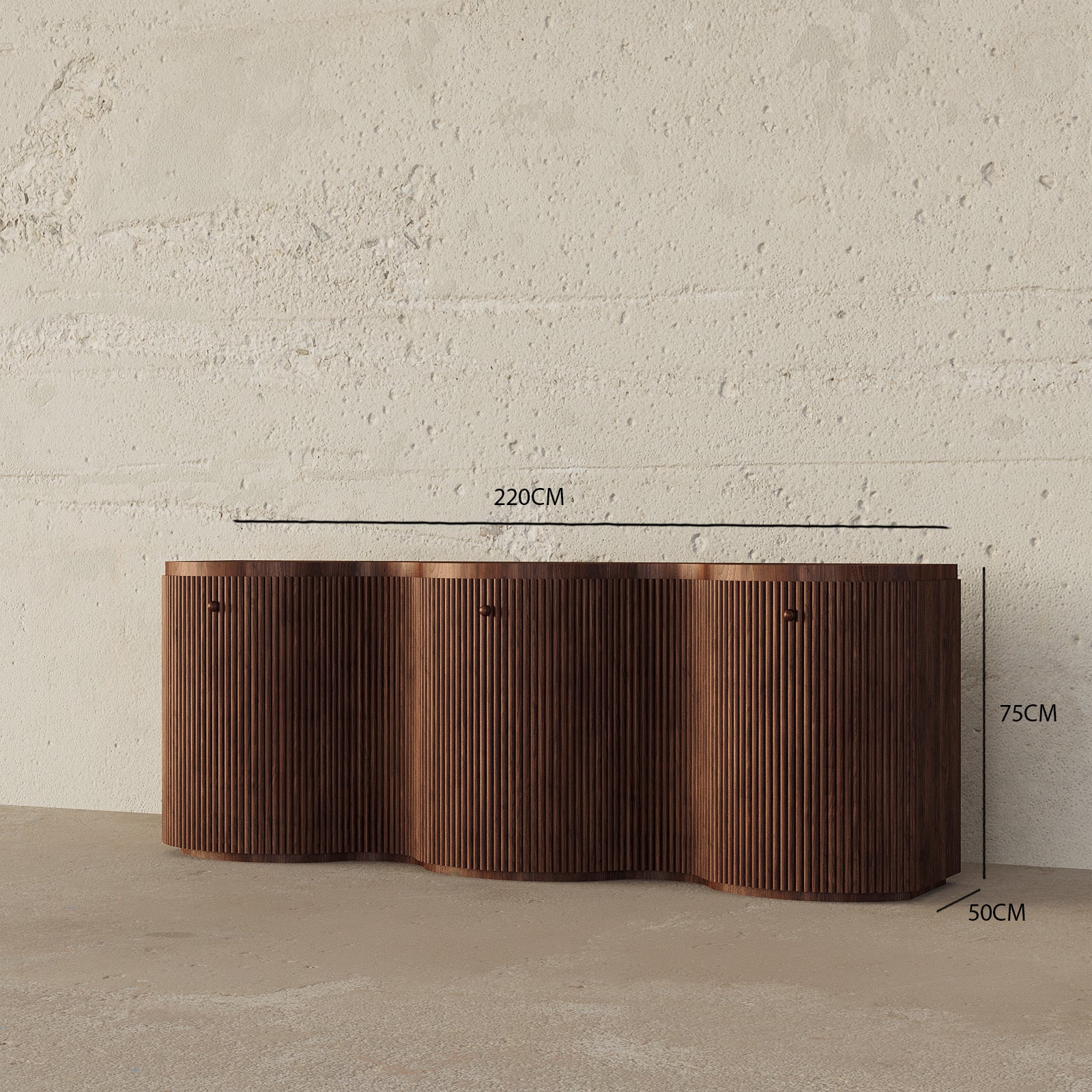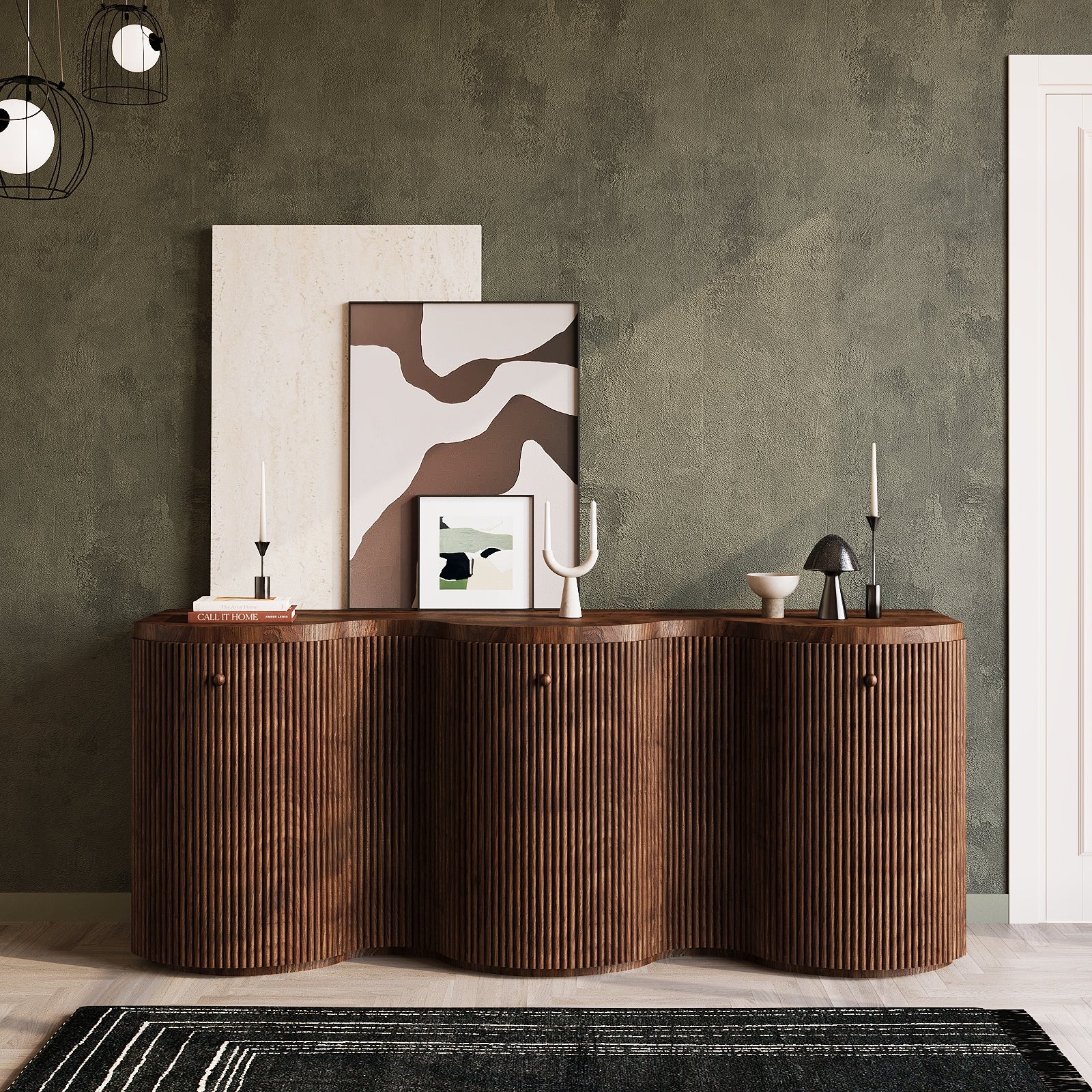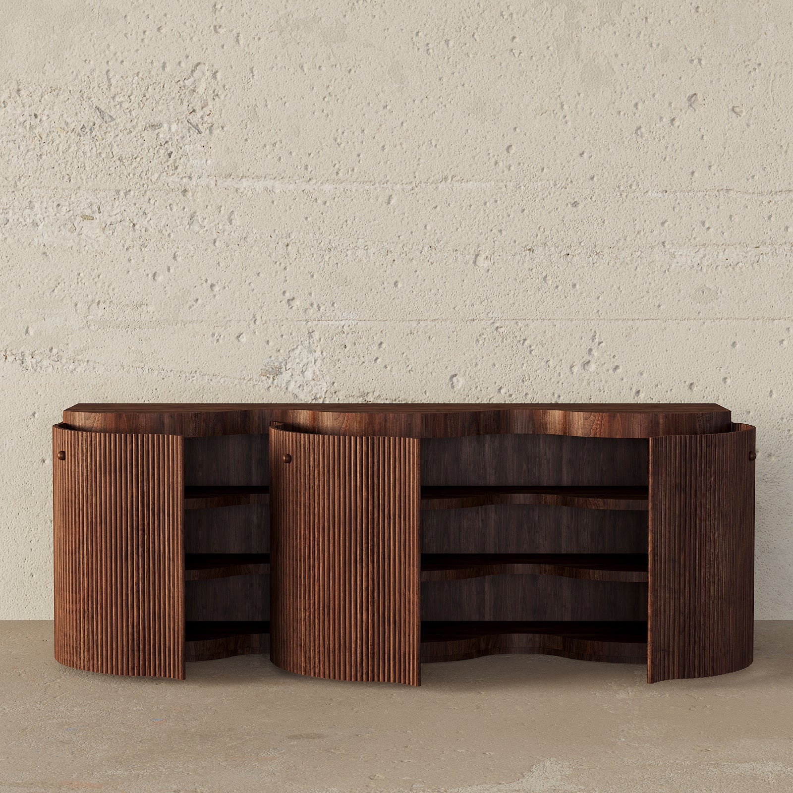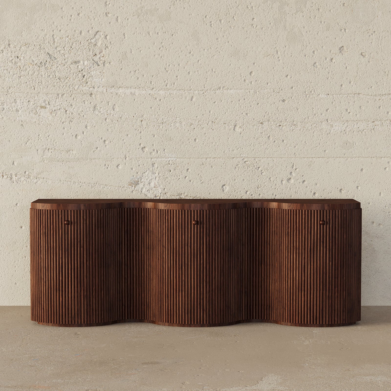 أضف لمسة من الرقي مع بوفيه Grove Buffet. تصميمه العصري، ولمسة الجوز الدافئة، والتخزين الواسع يجعله مثالي لإضافة الأناقة إلى أي غرفة. تضيف الحواف المنحنية غير المنتظمة نعومة رقيقة وتمتزج بسهولة مع مختلف أنماط الديكور، مما يجعلها خياراً مثالياً لتنظيم الأغراض بأناقة.