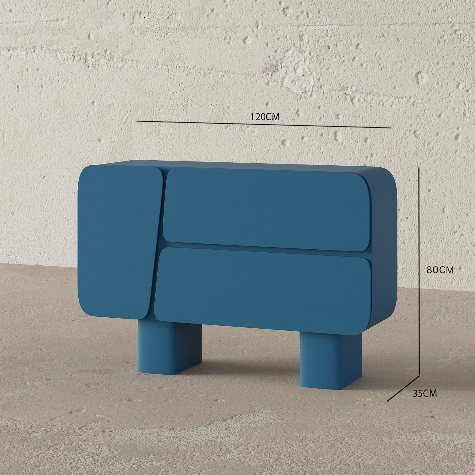 خزانة كيوتو عبارة عن خزانة عصرية وأنيقة تتميز بتصميم جريء وغير متناسق مع خطوط نظيفة وطلاء أزرق نابض بالحياة. يضفي الشكل الفريد والأرجل المتينة تأثيراً بصرياً مذهلاً، بينما توفر مساحة التخزين الواسعة وظائف عملية. تتميز هذه الخزانة بخطوطها الأنيقة ومظهرها الجمالي البسيط مما يجعلها قطعة متعددة الاستخدامات يمكن أن تتكامل مع مجموعة متنوعة من التصاميم الداخلية.