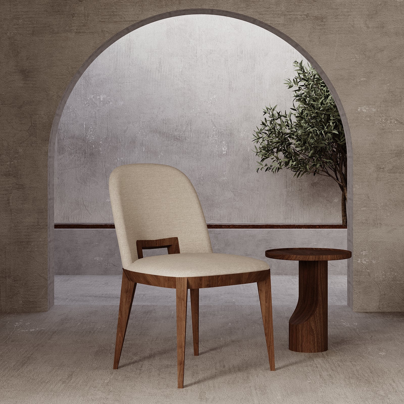 يتميز كرسي الطعام الأنيق Milano الأنيق بمسند ظهر منحني ومقعد مريح من القماش القطني البيج، مدعوم بأرجل خشبية داكنة رفيعة. يمزج تصميمه الخالد بين السحر الكلاسيكي والبساطة العصرية، وهو مثالي لأي مساحة لتناول الطعام.