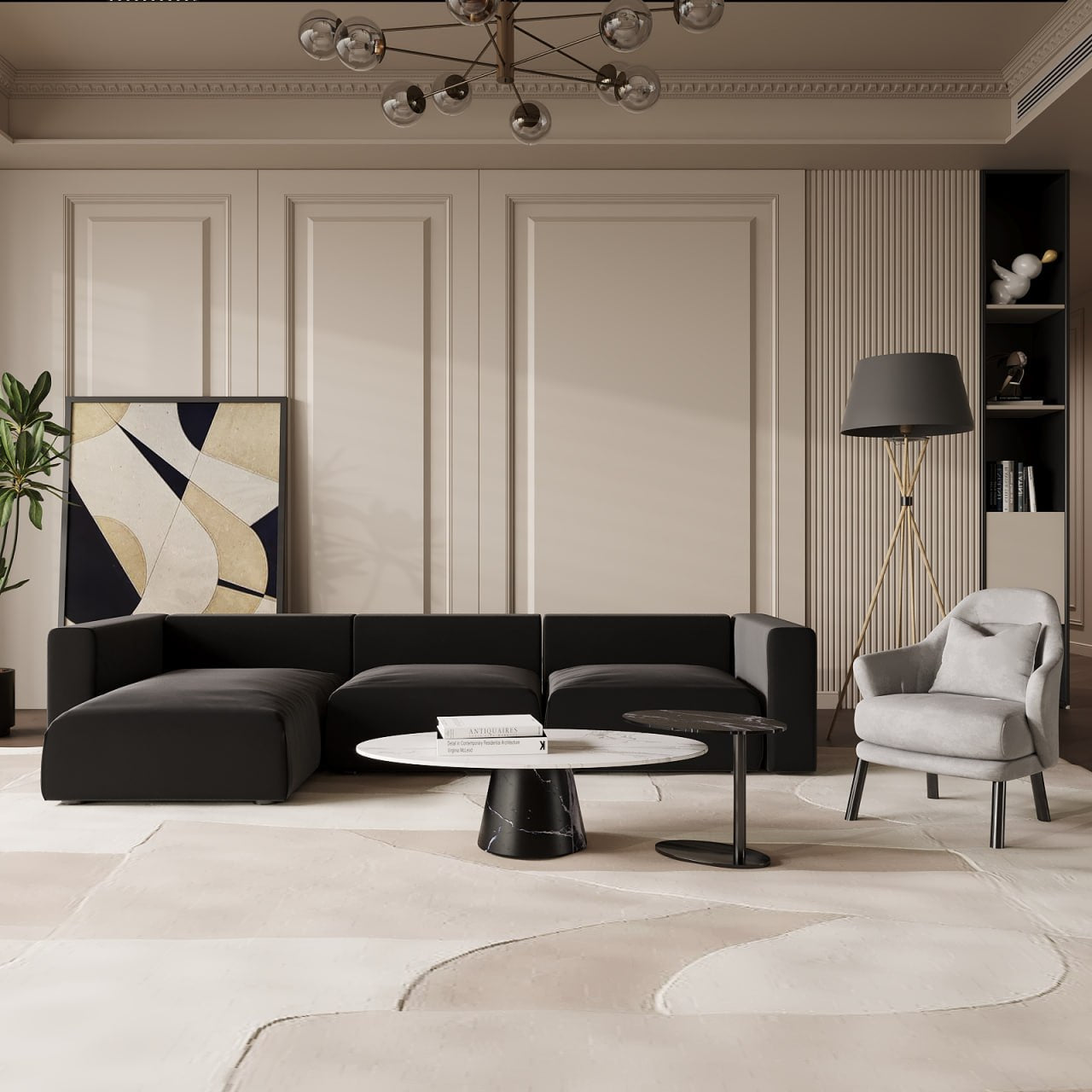 - لون طاولة القهوة - أبيض وأسود