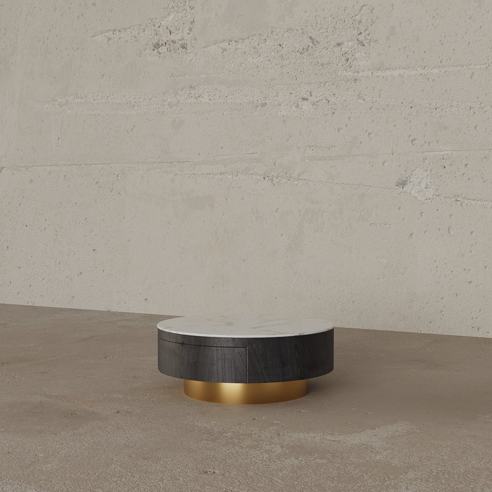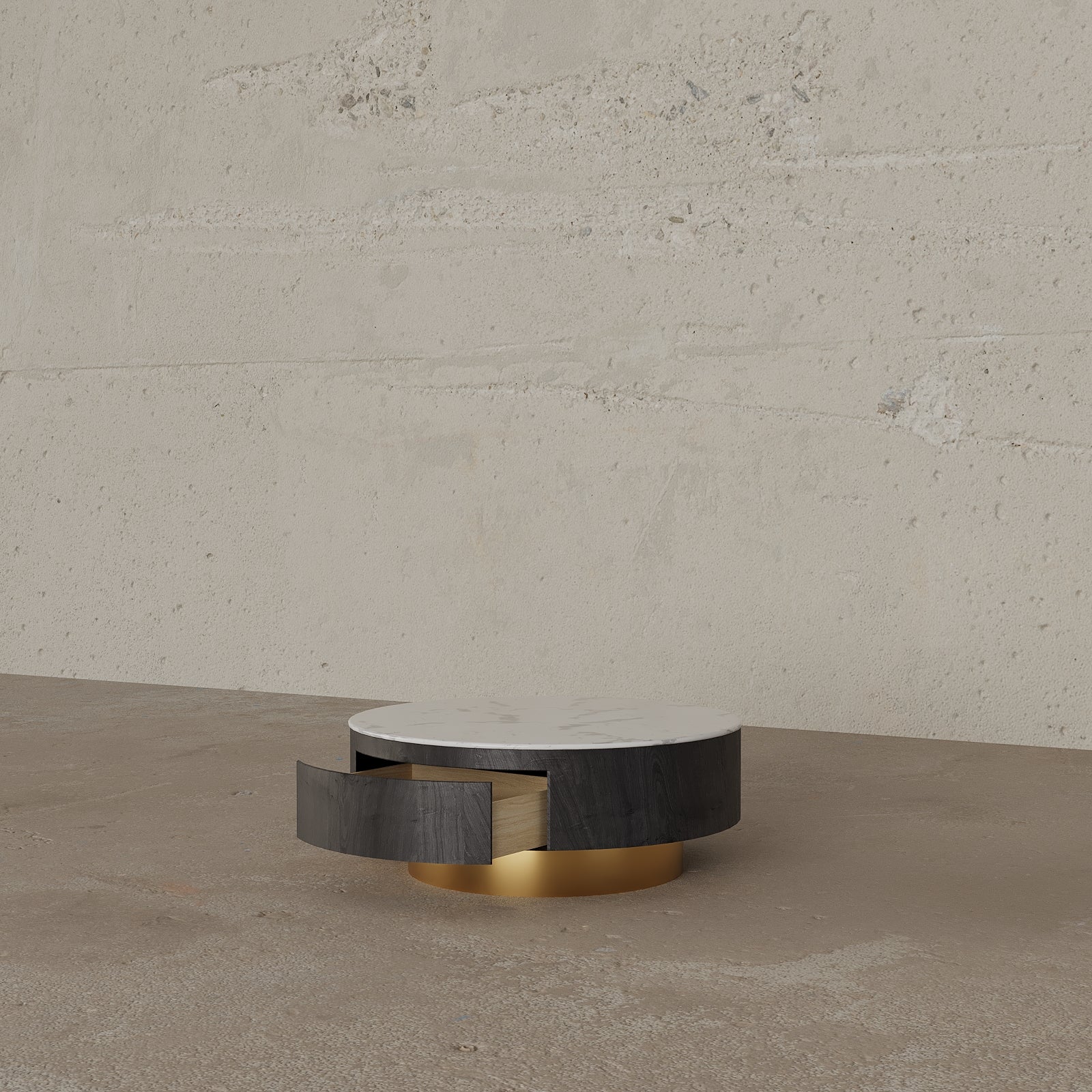 - خامة طاولة القهوة - سطح من الحجر مع قاعدة معدنية