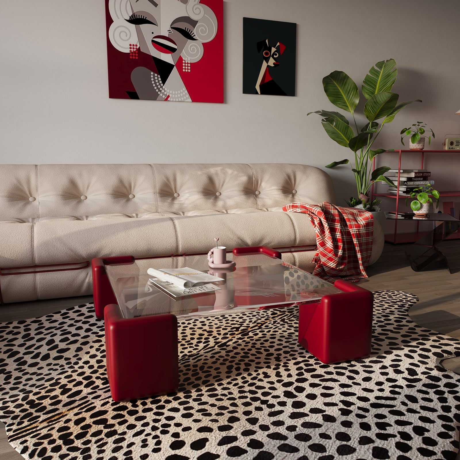 تعتبر طاولة القهوة المكعبة إضافة عصرية وغريبة الأطوار تضفي لمسة هندسية على أي غرفة. يتميز هيكلها المميز بسطح زجاجي مربع الشكل يحمله أربعة أرجل خشبية قوية على شكل مكعبات. مزيج من الزجاج الشفاف والخشب الجريء يضفي مظهراً حيوياً ولافتاً للنظر. تعتبر هذه الطاولة مثالية للإعدادات العصرية وتوفر مساحة واسعة لعرض الزينة أو احتساء المشروبات.