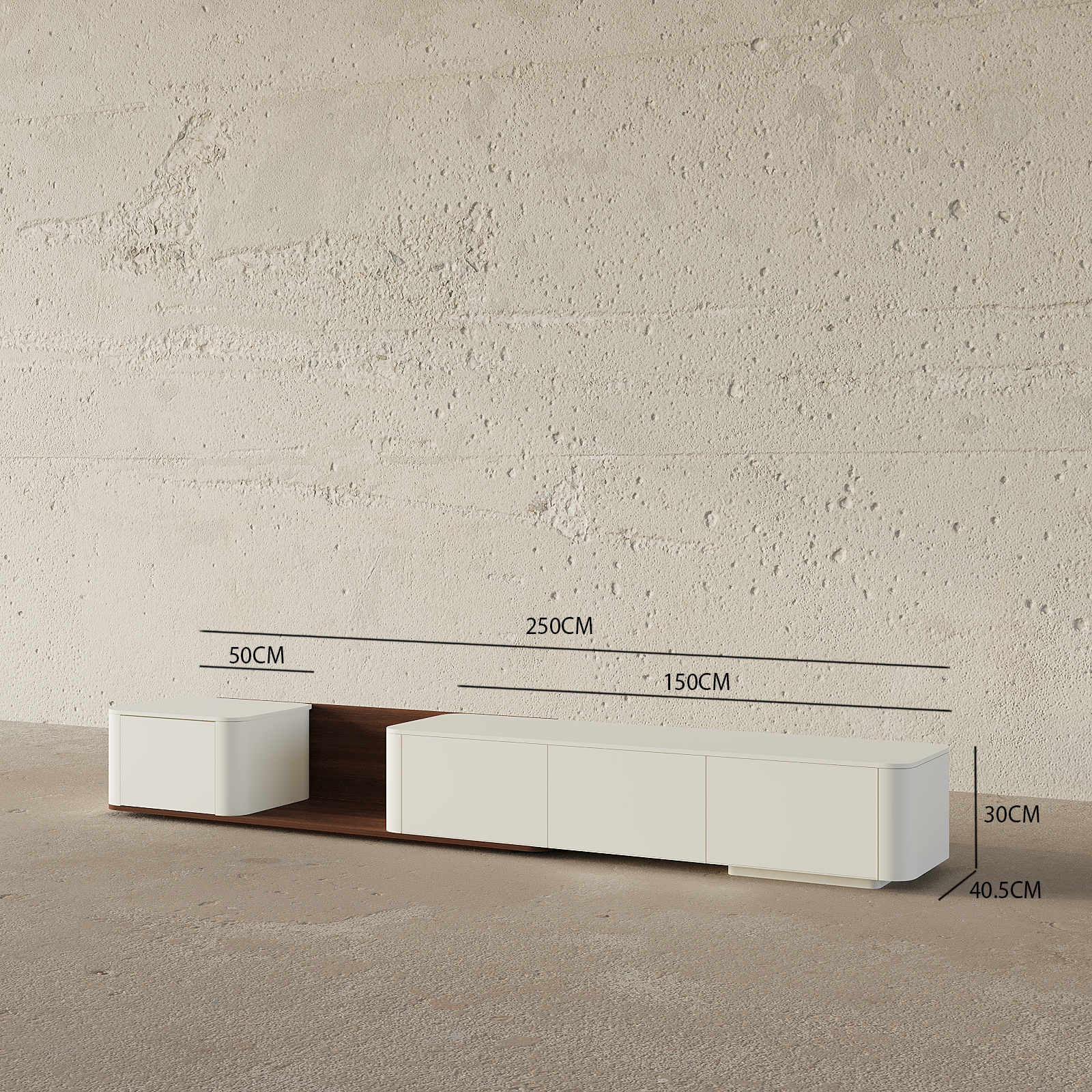 • يمكن تعديل الخزانة الجانبية لتناسب أي مساحة، مما يوفر خيارات عرض وتخزين متعددة الاستخدامات.