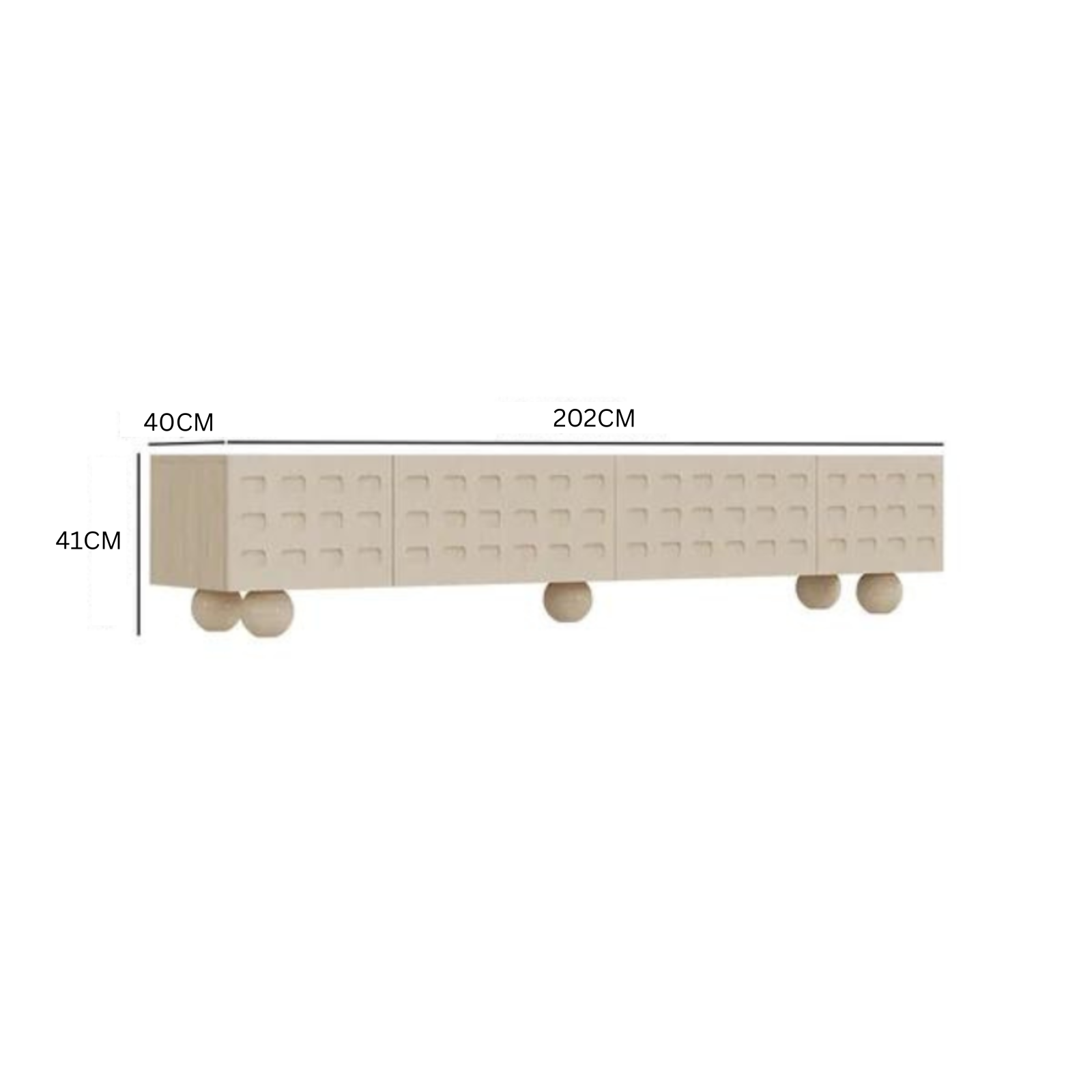 انغمس في الفخامة مع وحدة تلفاز Turri. صُنعت هذه الوحدة العصرية من اللون البيج الرائع، وتتميز بتصميم أنيق متقلب. توفر أرجلها الخمسة الكروية دعماً متيناً، بينما توفر أربعة أبواب مساحة تخزين واسعة. ارتقِ بغرفة جلوسك مع هذه القطعة الأنيقة والعملية.