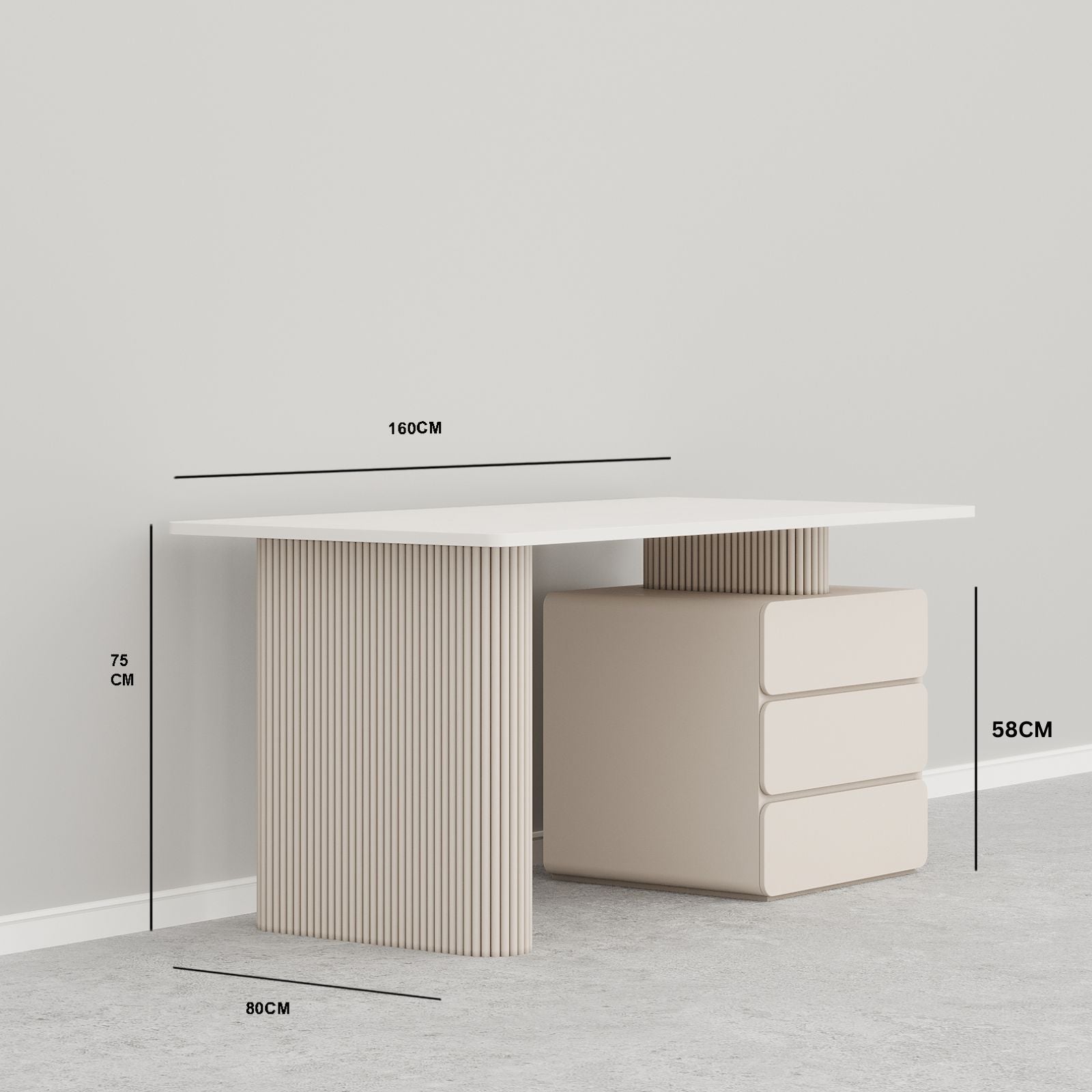 انغمس في الفخامة مع منضدة مكياج أماندا. يتميز هذا المنضدة العصرية بسطح أبيض ناصع مع قاعدة باللون البيج، تعلوها أرجل أنيقة مسننة. مع ثلاثة أدراج، فهي توفر الأناقة والأداء الوظيفي الموفر للمساحة. مثالي لغرفة التجميل الخاصة بك، ارفعي من مستوى روتينك مع هذه القطعة الرائعة.