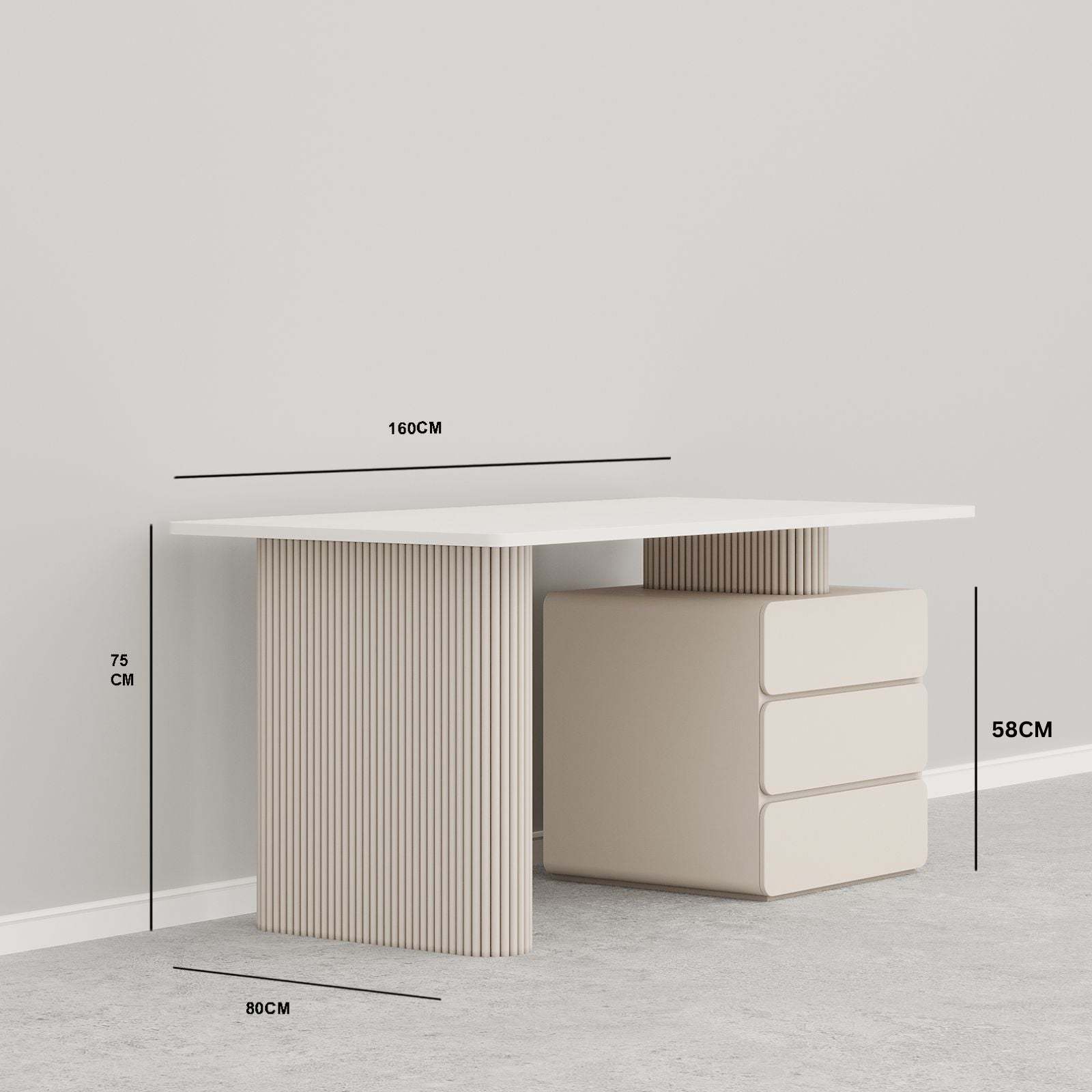 Indulge in luxury with the Amanda Make-Up Vanity. This modern vanity features a pristine white surface with a beige base, elevated by elegant notched legs. With three drawers, it offers both style and space-saving functionality. Perfect for your beauty bedroom, elevate your routine with this exquisite piece.