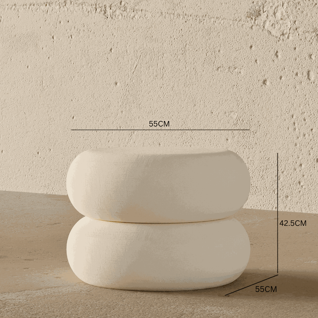 The Donut Pouf is a unique and stylish piece of furniture that adds a touch of fun and functionality to any room. Its playful shape and soft fabric make it perfect for lounging, extra seating, or as a footrest.