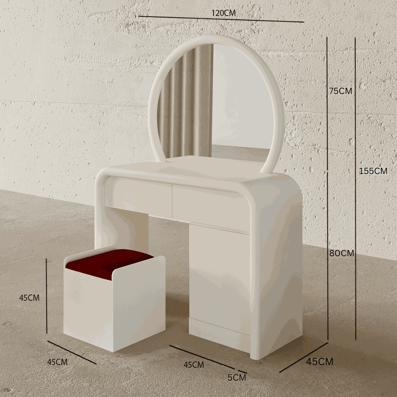 Overall Vanity: 120 W x 45 D x 155 H cm