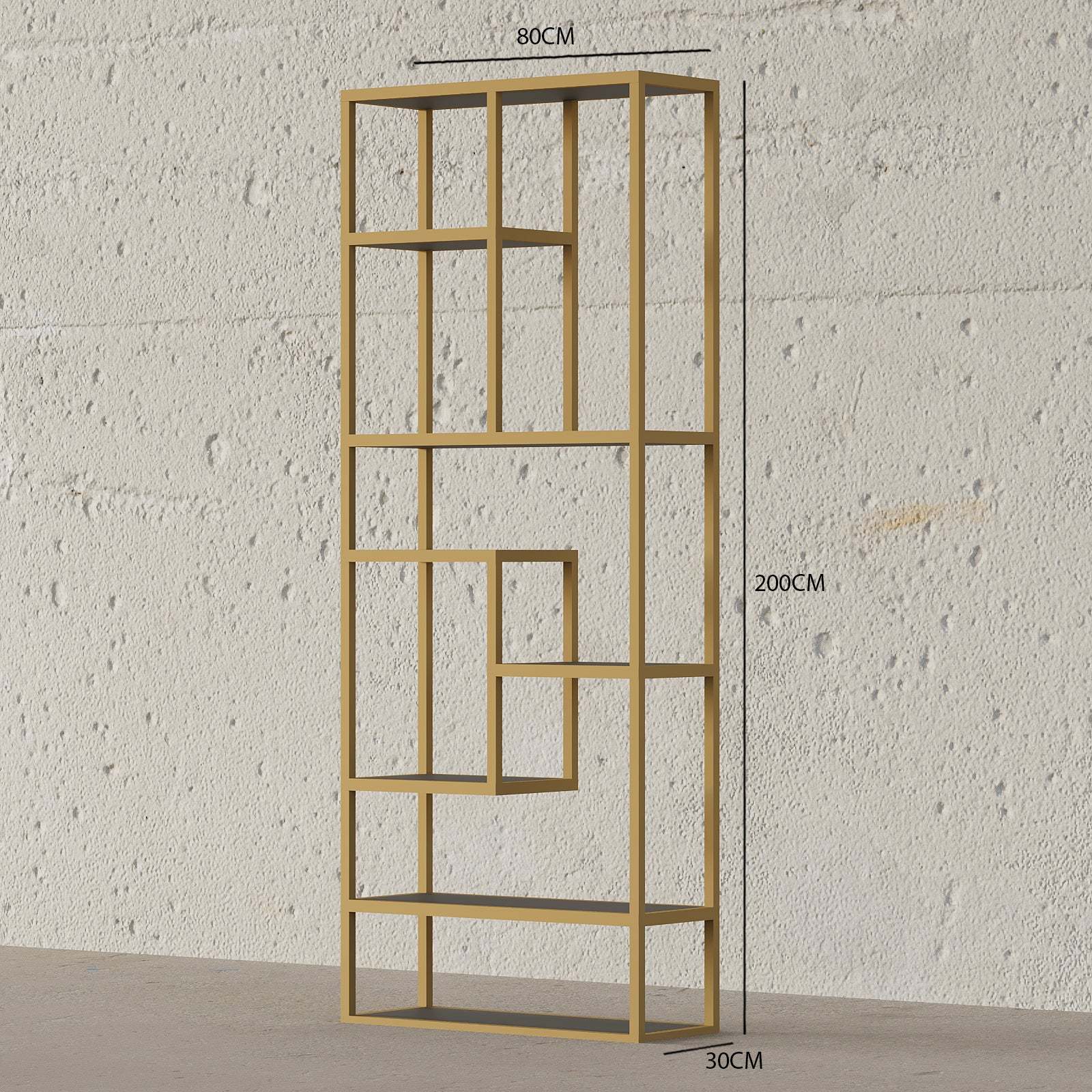 This 8-shelf etagere bookshelf is perfect for storing or displaying books. Because of the shelf's adaptability, it may be used for a wide variety of storage needs without restriction. Heavy-gauge metal construction assures durability and longevity. It provides plenty of space to exhibit your favorite books. This inventive library bookshelf is both a unique design and a space-saving solution for a small area.
