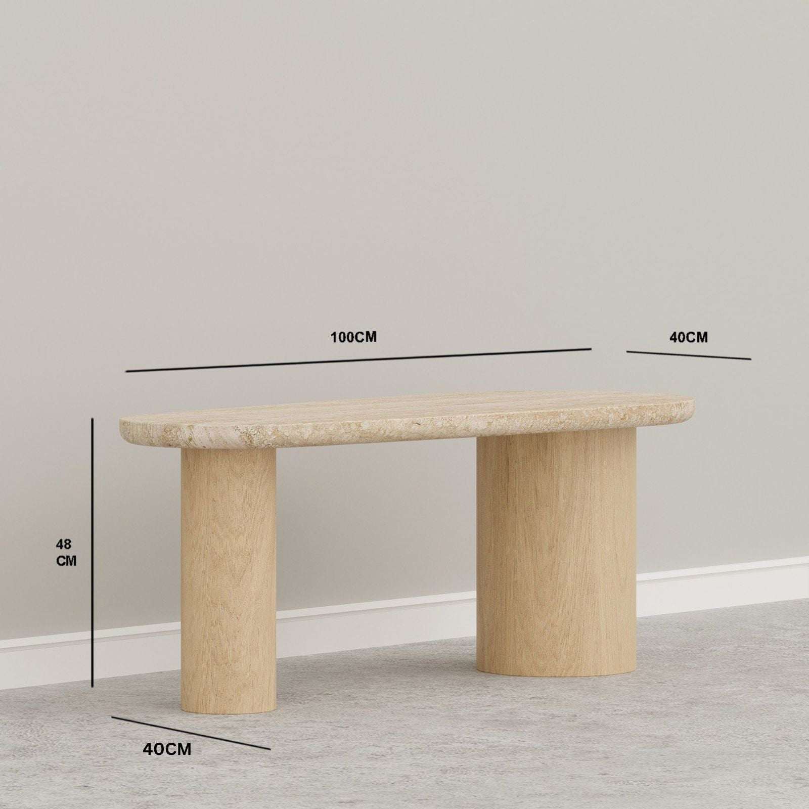 - Made from the finest travertine and solid wood.