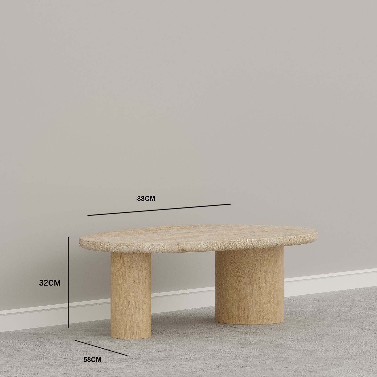 - Overall Small Coffee Table Dimensions : 88 W x 58 D x 32 H CM