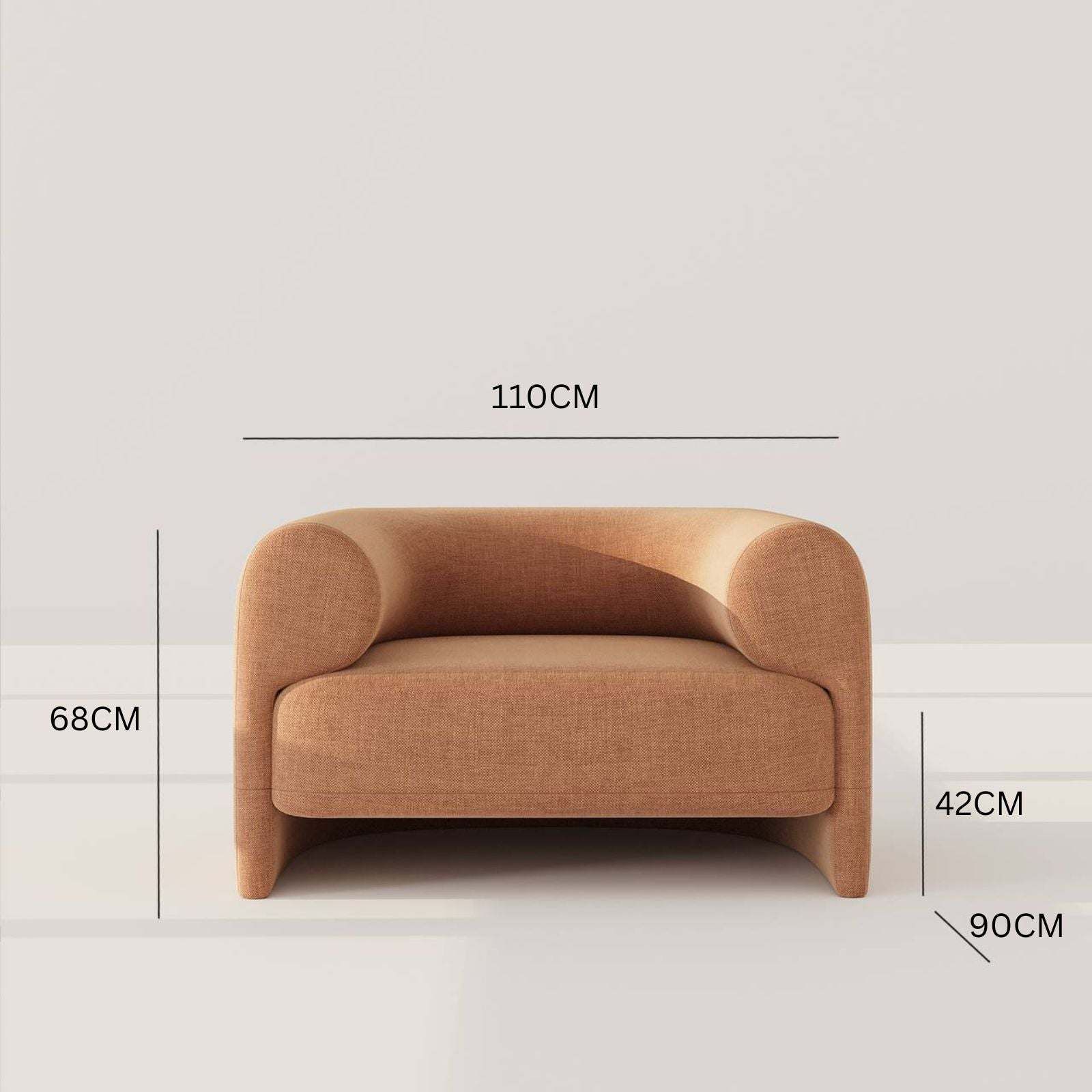 Indulge in the modern sophistication of the Henri Armchair in luxurious premium beige and brown linen. The modern design features connected arms and a raised seat for ultimate comfort and relaxation. Unwind in elegance and sophistication with this u-shaped backrest design.
