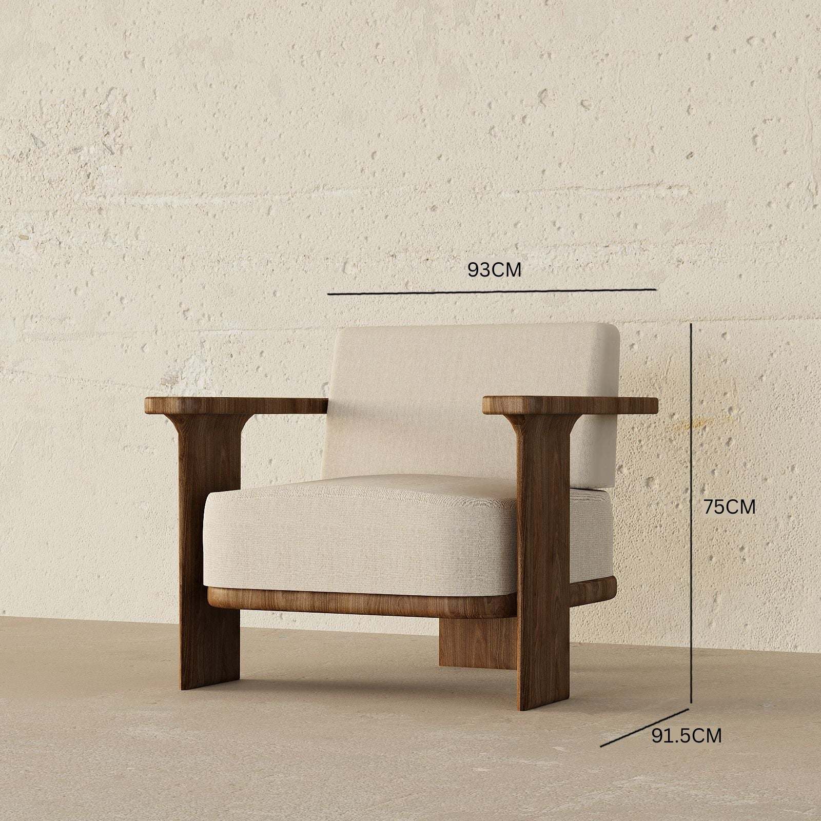Minimalist yet comfortable, the Lisbon Armchair combines rich walnut wood with soft cotton blend upholstery. Its architectural design and sophisticated silhouette make it the perfect addition to contemporary living spaces where style meets comfort.