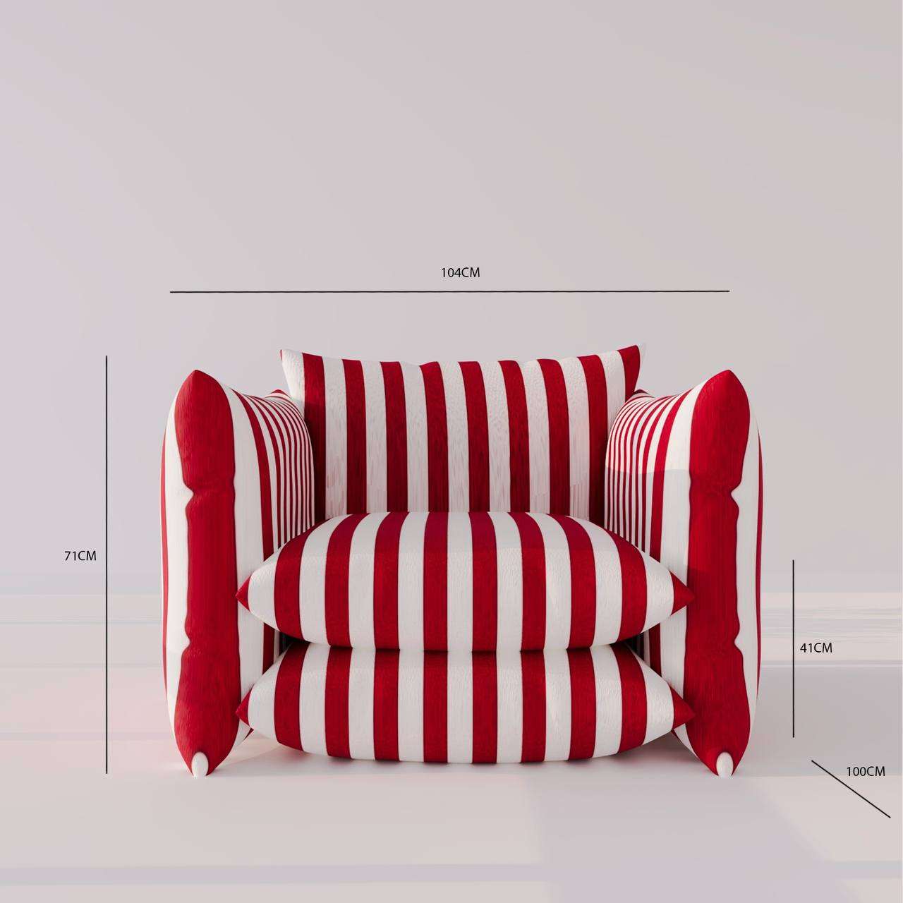 Indulge in the comfort of our Pillows Armchair in stripped white & red / white & black satin. With its unique design resembling pillows, it invites you to relax and unwind. The modern and exclusive color combination adds a touch of elegance to any room. Experience ultimate relaxation and style with our armchair.