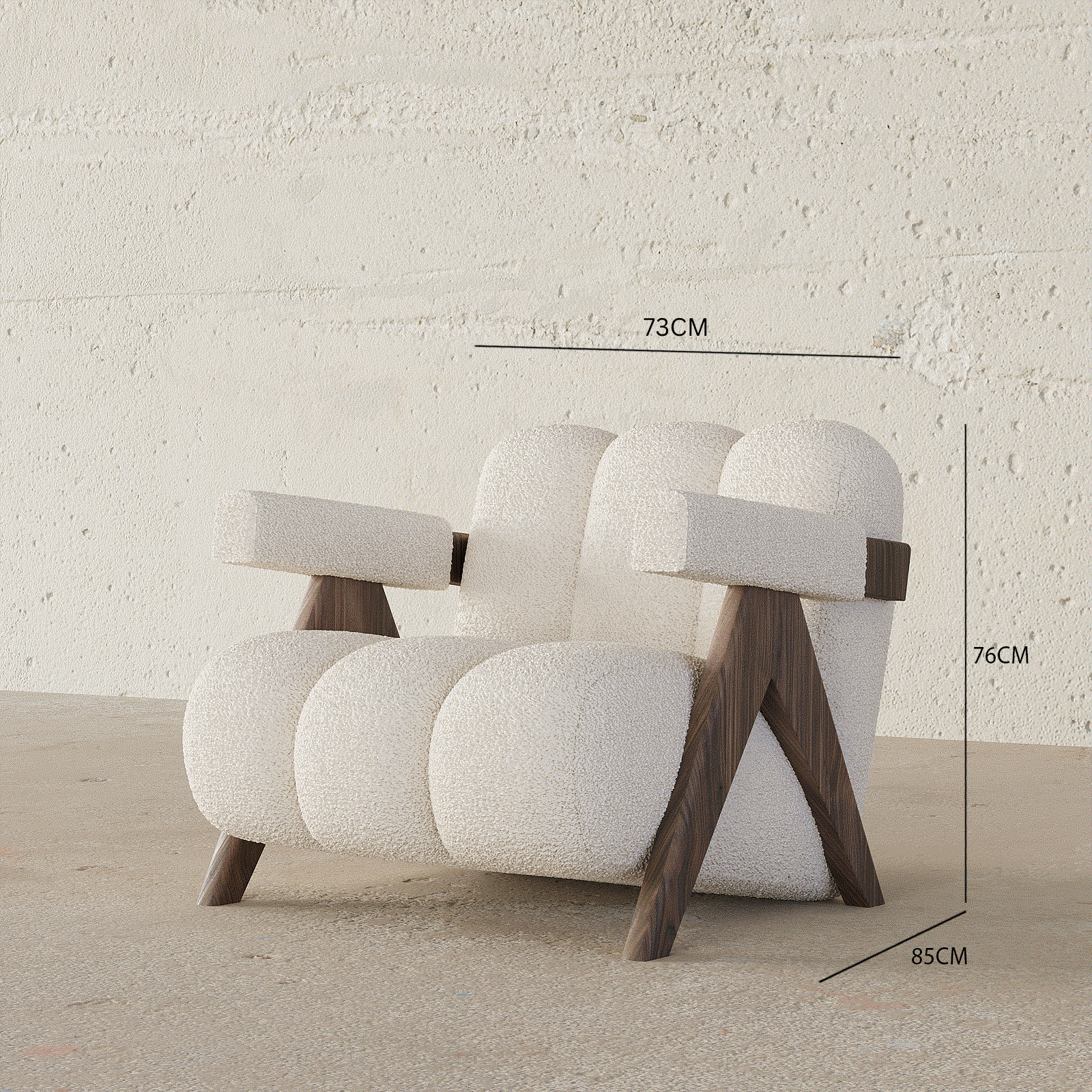 The Sage Armchair combines modern design with cozy comfort, featuring soft bouclé upholstery and a unique sculptural shape. With plush padding and sturdy wooden legs, this armchair brings style and warmth to any room. Perfect for adding a touch of elegance and comfort to your living space.