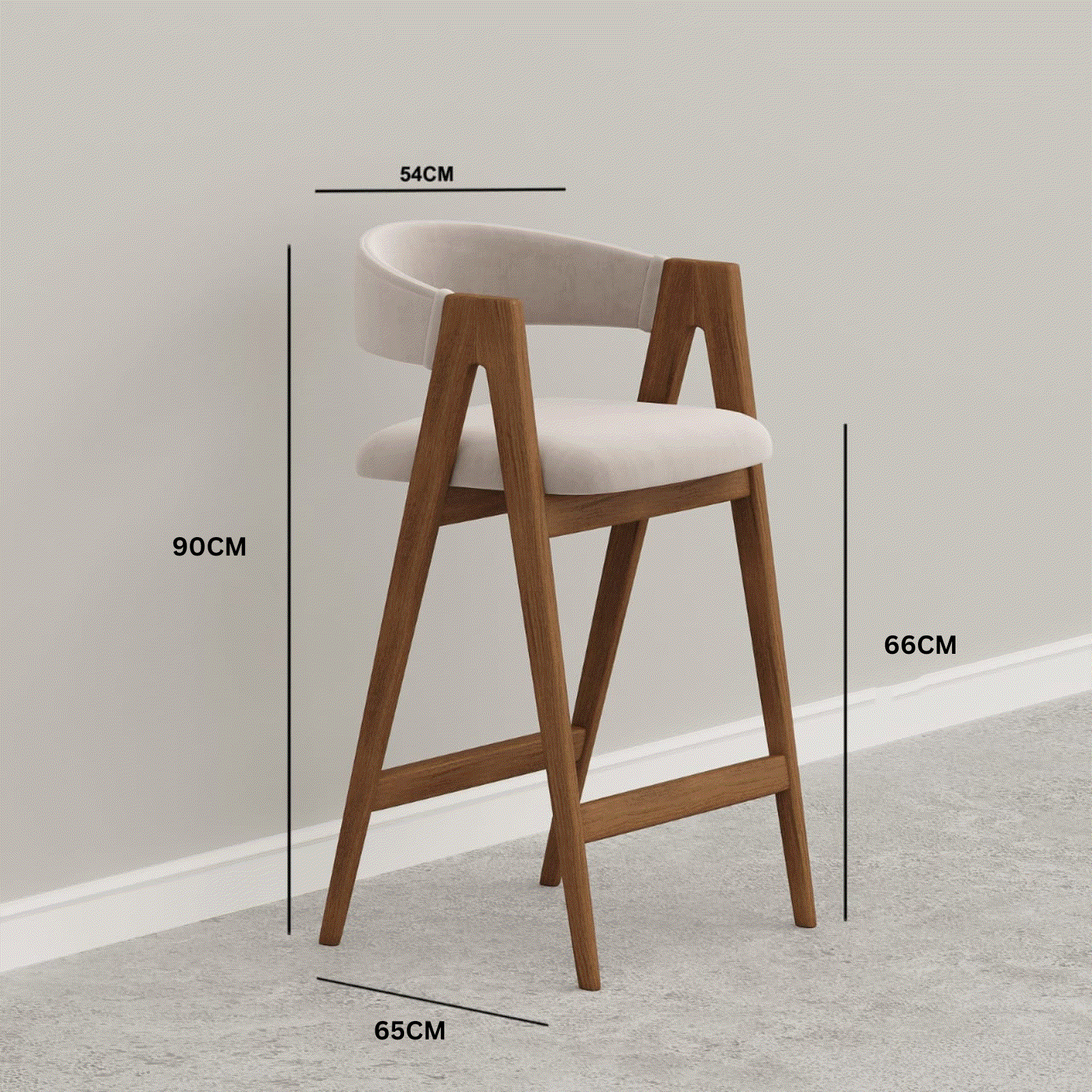 Introducing the Cimon Bar Stool, the epitome of modern elegance. Crafted from solid wood with a sleek walnut finish, this stool features a curved backrest and v-shaped legs for a stylish touch. The white suede adds a touch of luxury while the footrest offers added comfort. Enhance any kitchen or bar with this chic and sophisticated piece.