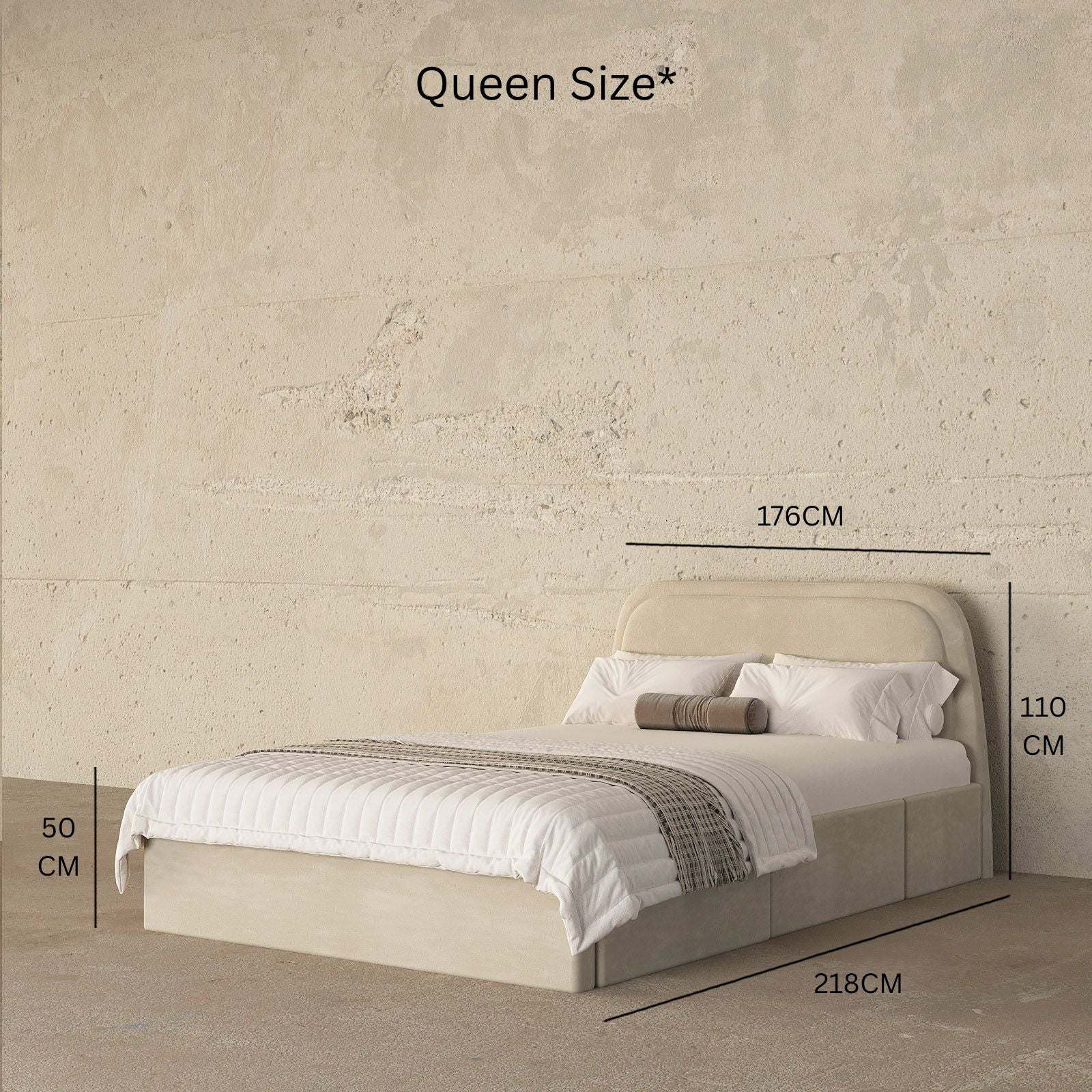 - Queen Bed: (176 x 218) cm / Mattress Size (160x200) cm