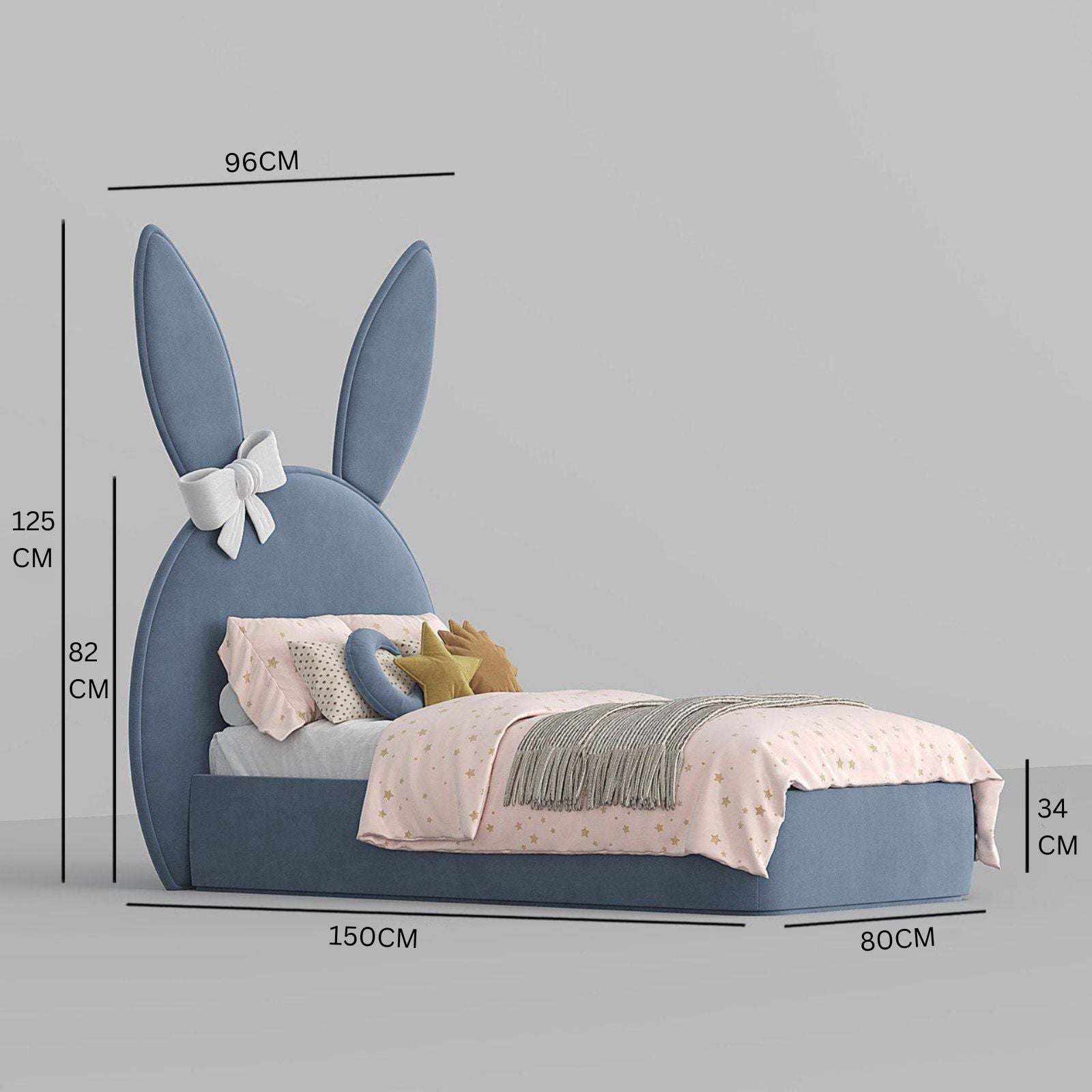 Introducing the Micky Bed - a modern and unique addition to your child's room. Available in green, blush pink, and baby blue, its fluffy colors and headboard designed like Micky Mouse add a playful touch to the room. Bring color and comfort to your child's space with our exclusive bed.