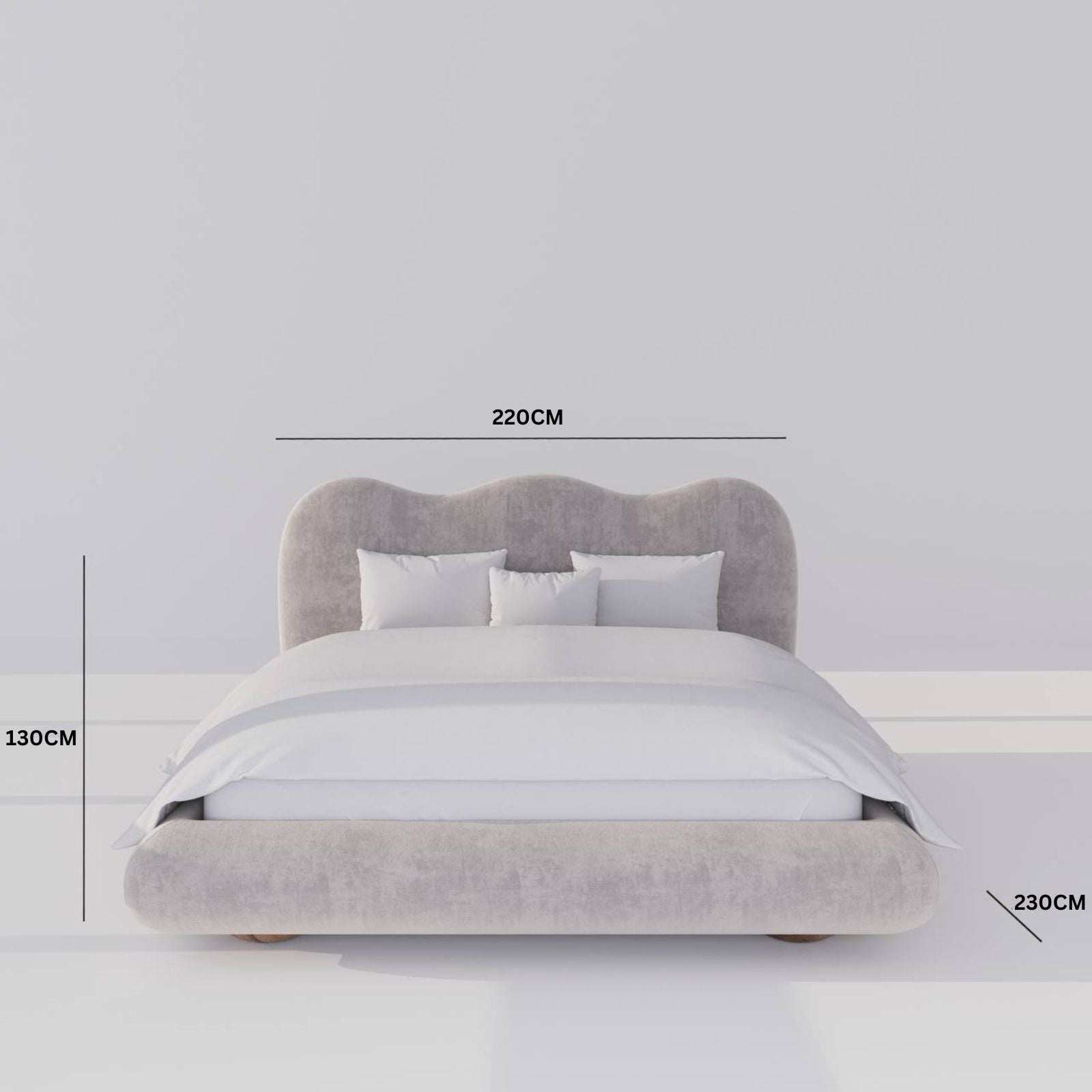 • King Bed: 220 W x 230 D x 130 H CM / Mattress Size : 180 x 200 CM