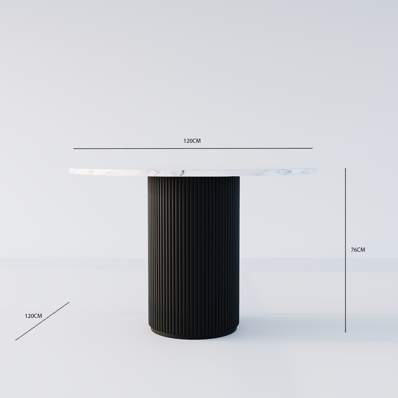The Ariston round dining table exudes elegance and sophistication with its sleek, minimalist design. Its natural marble top offers a luxurious surface, perfect for dining and entertaining. The table's refined simplicity allows it to effortlessly complement any interior style.