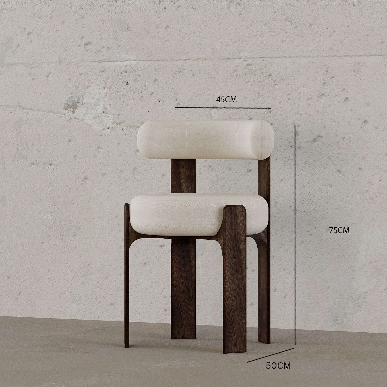 The Rivulet Chair brings warmth and textured elegance to your dining space. Expertly crafted with a sturdy walnut wood frame and upholstered in a soft, cotton-linen blend fabric with high-density foam for ultimate comfort, this chair embodies the principles of Japandi and wabi-sabi styles. It celebrates the beauty of natural materials and subtle imperfections, offering a unique, organic aesthetic perfect for those seeking refined simplicity.