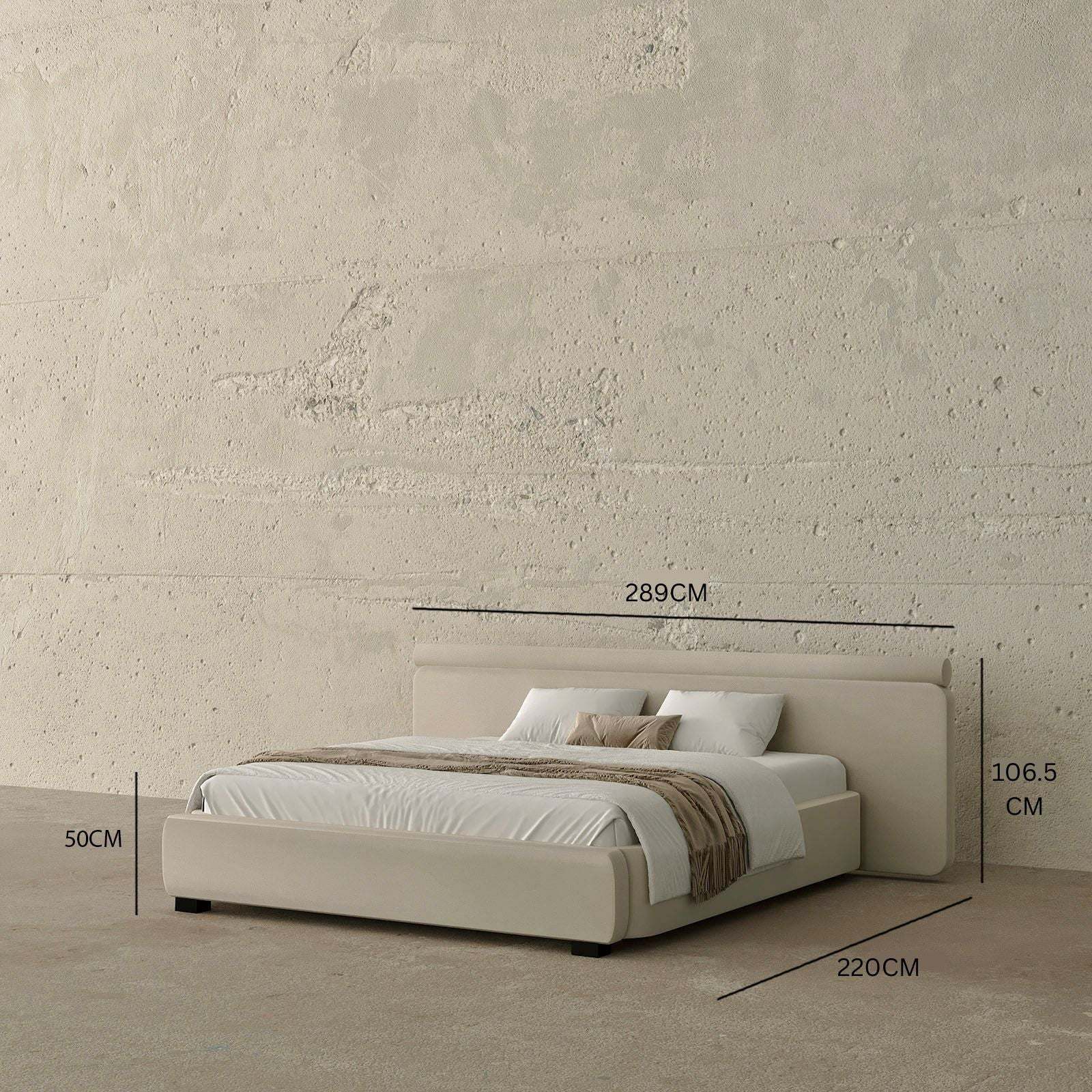 - King Bed: (189 x 220) cm / Mattress Size (180x200) cm / Headboard Size: (269 x 106.5) cm