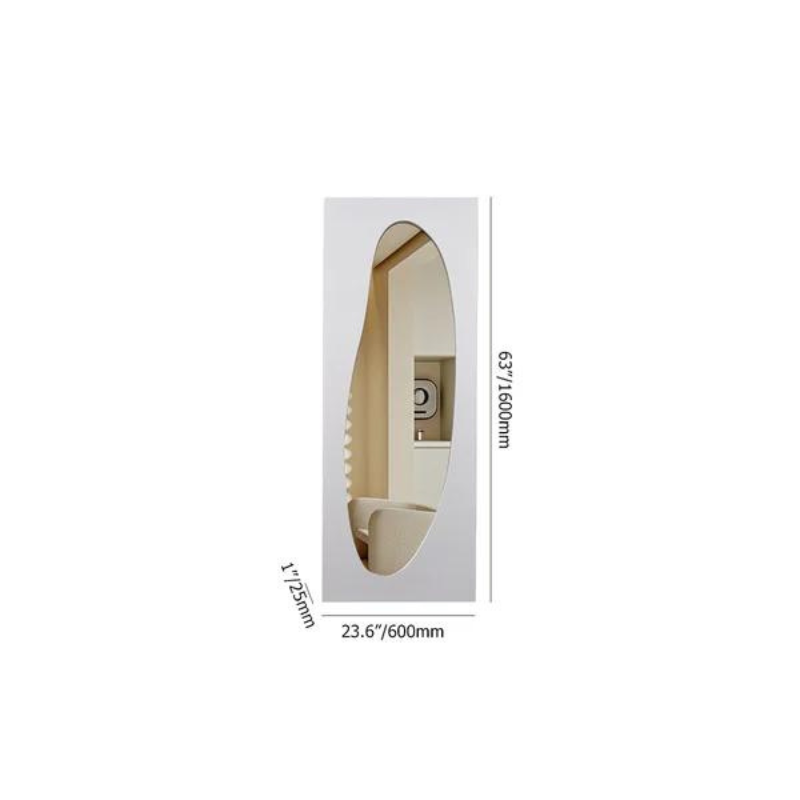 • With its unique rectangular frame and abstract asymmetrical mirror.