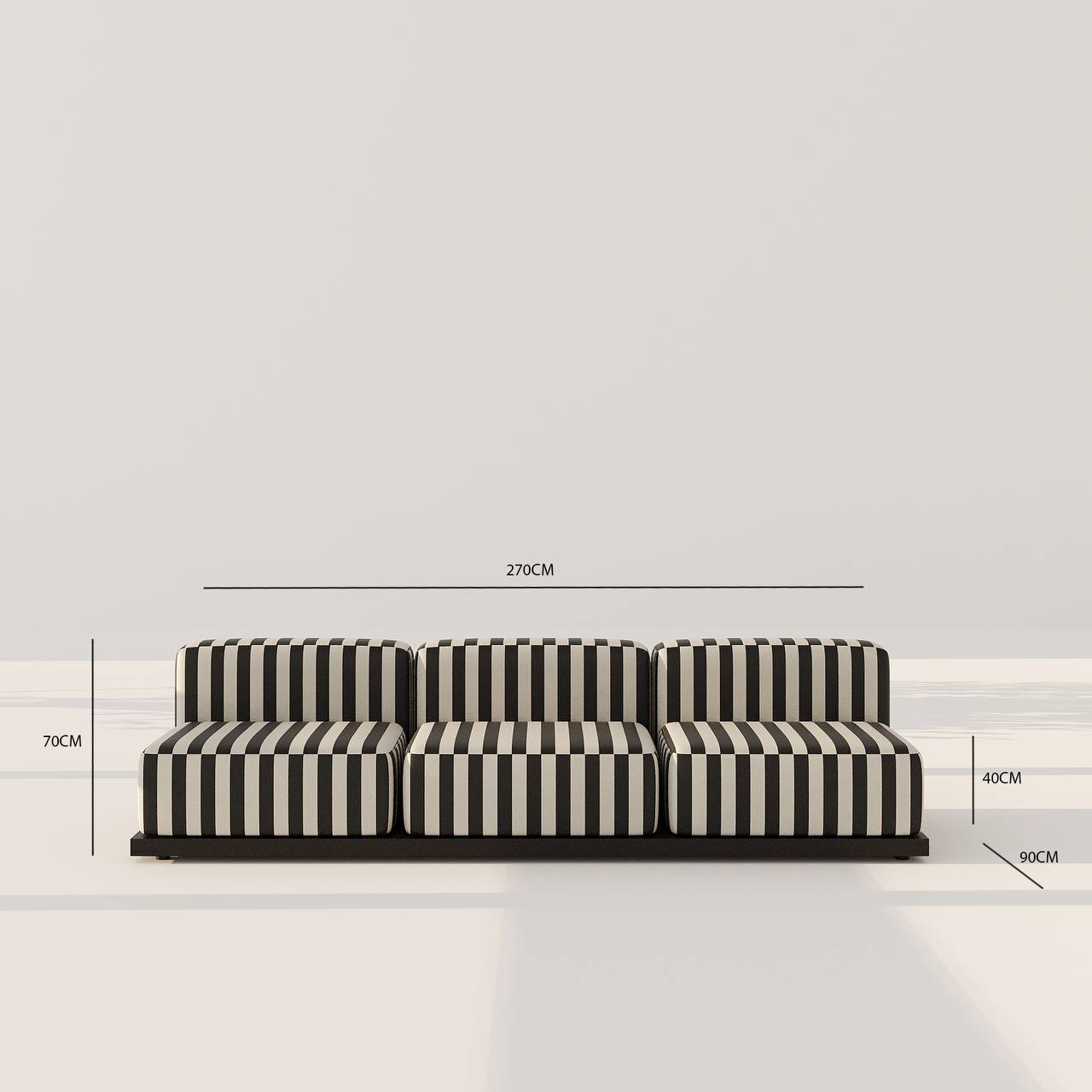 Introducing the XO Sofa 3S, a stunning modern piece made with luxurious white and black satin. Its armless design and unique appearance make it a timeless addition to your room. With a charcoal base, this sofa exudes sophistication and elegance. Elevate your space with this exquisite and exclusive piece.