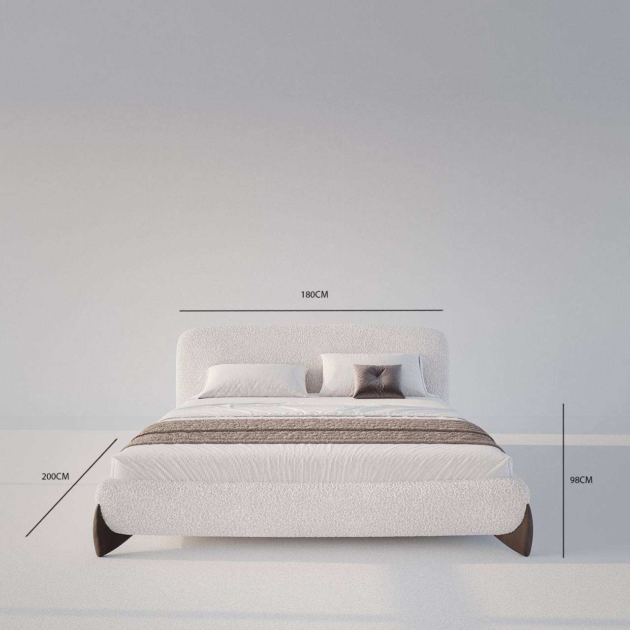 This trendy platform bed will give a touch of warmth and comfort to your bedroom. The charming bed, a classic bed type with a boucle texture, will be the center point of your bedroom and will undoubtedly elevate your interior design to a new level.