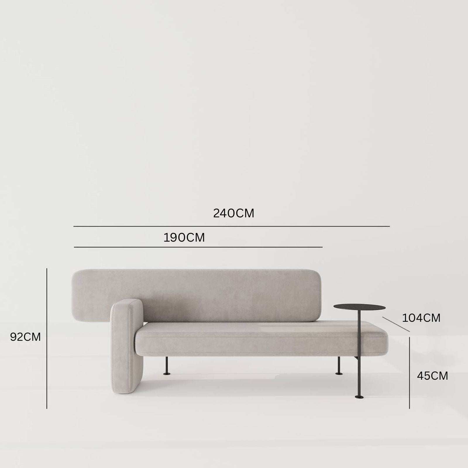 • Overall Dimensions : 240 W x 104 D (WITH TABLE) x 92 H CM