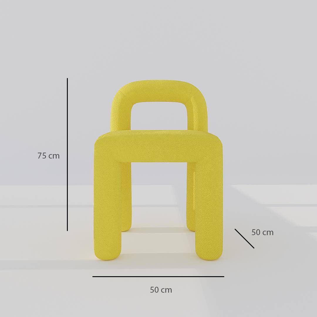 Introducing the Kenji Armchair, featuring a vibrant yellow hue reminiscent of the sun's radiance. With its bright and uplifting color. Its low backrest offer both comfort and style. With four round legs and a chic square shape, this armless chair is perfect for creating a sophisticated and exclusive atmosphere.