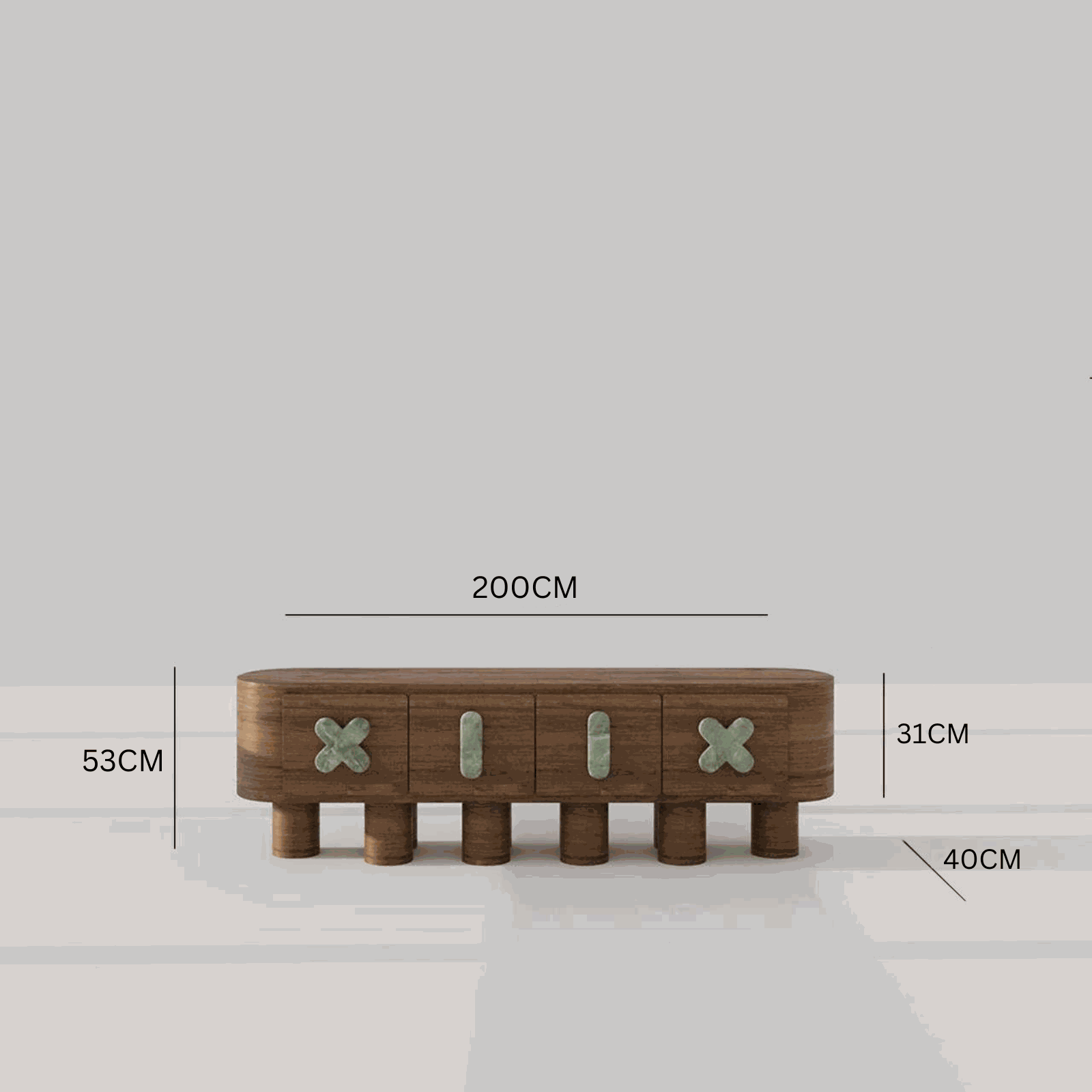Elevate your living space with the XO TV Unit, a modern and luxurious addition to any room. Crafted from MDF in Charcoal or African Teak finish, this unit features four doors for ample storage and a unique marble veneer handle in the shape of X-I. With ten O legs that set it apart from any other stands in the market, this TV unit adds will be the unique centerpiece of your home.