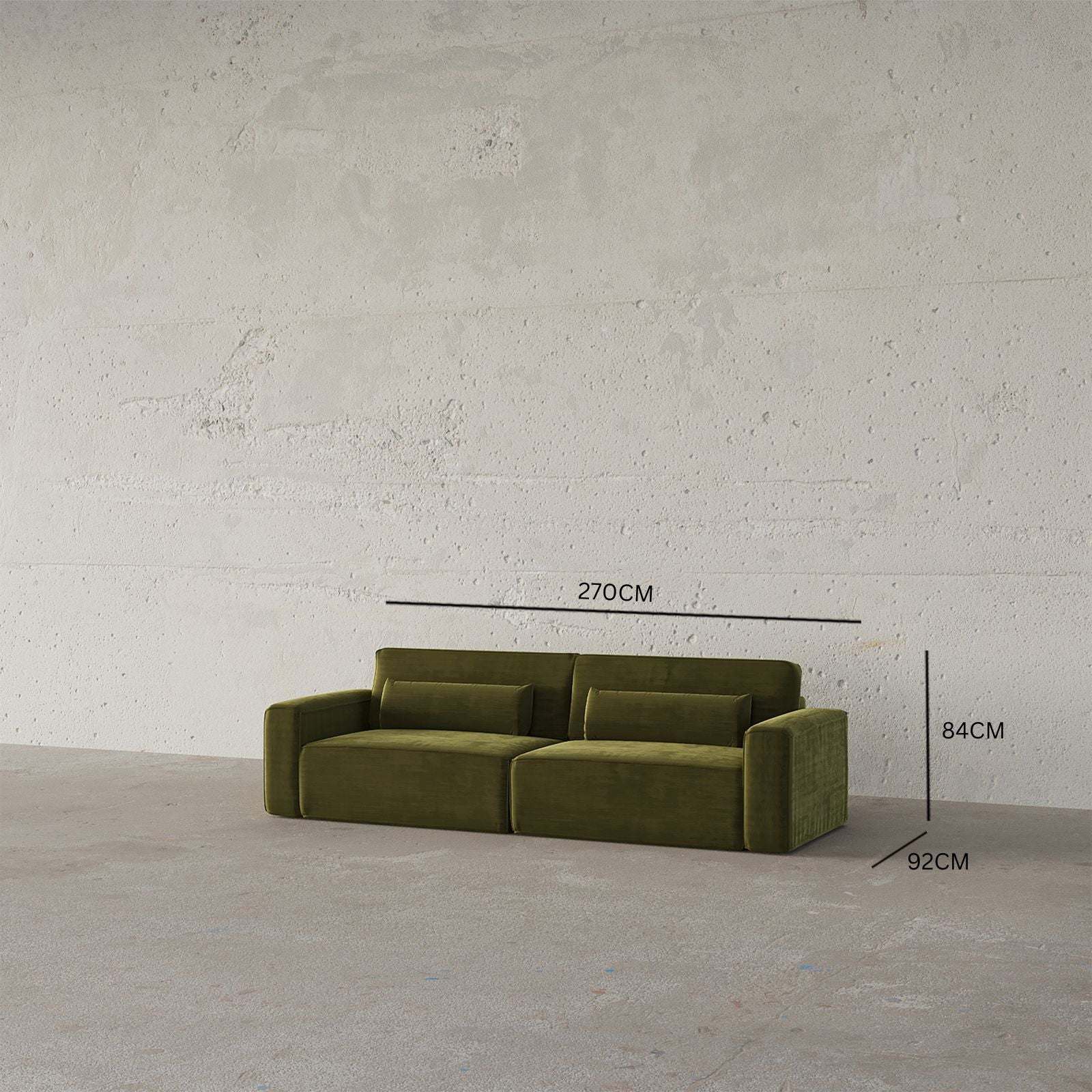 The Jacklin Sofa 3S in deep olive green velvet exudes modern sophistication with its clean, structured silhouette and rich, luxurious texture. Its deep, earthy tone and plush velvet upholstery create a statement piece that brings both comfort and contemporary elegance to any living space.