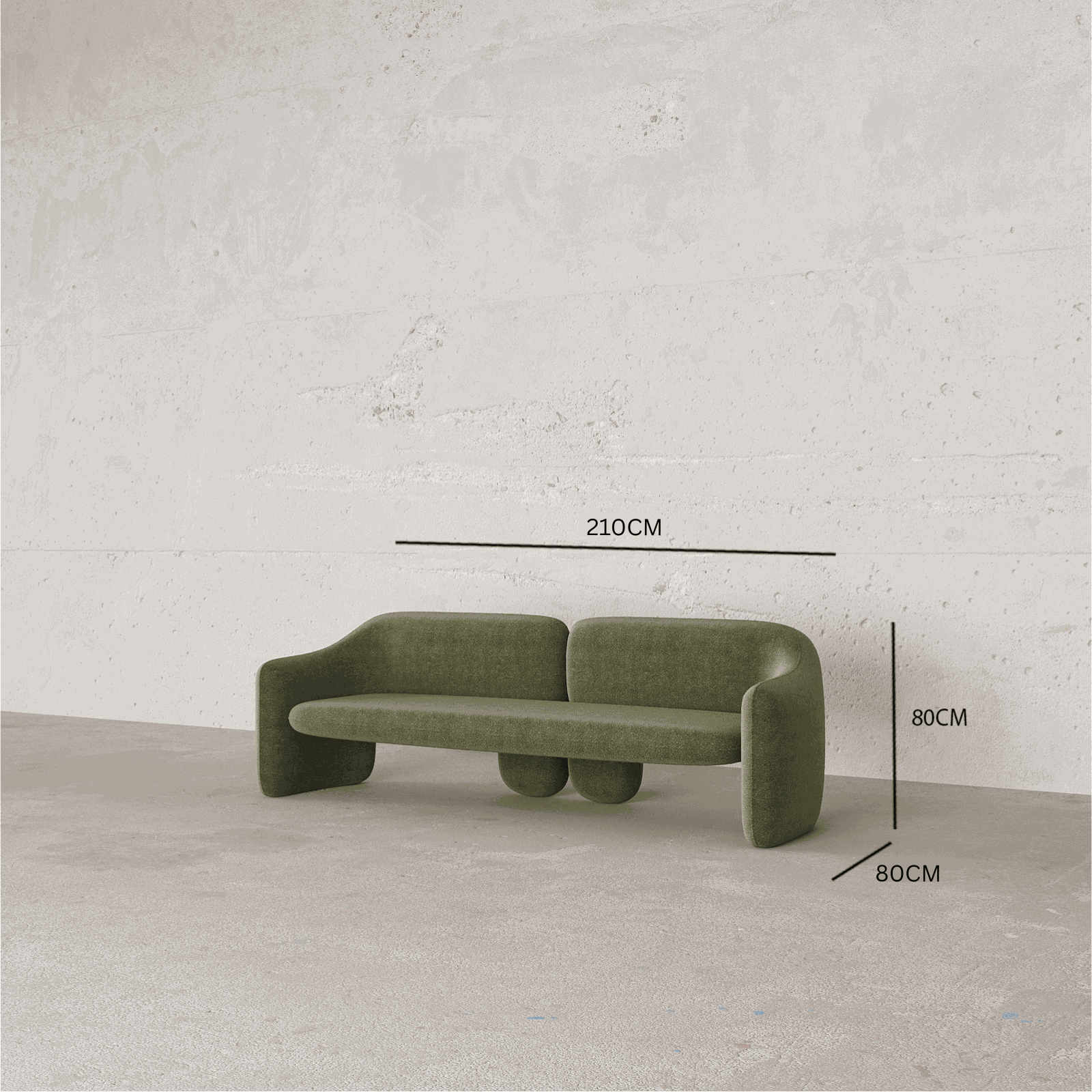 The Wesley 3-Seater Sofa in olive green boucle makes a striking statement with its sculptural form and rich, tactile texture. Its unique, rounded silhouette and luxurious boucle upholstery bring a touch of mid-century inspired elegance and contemporary comfort to any space.