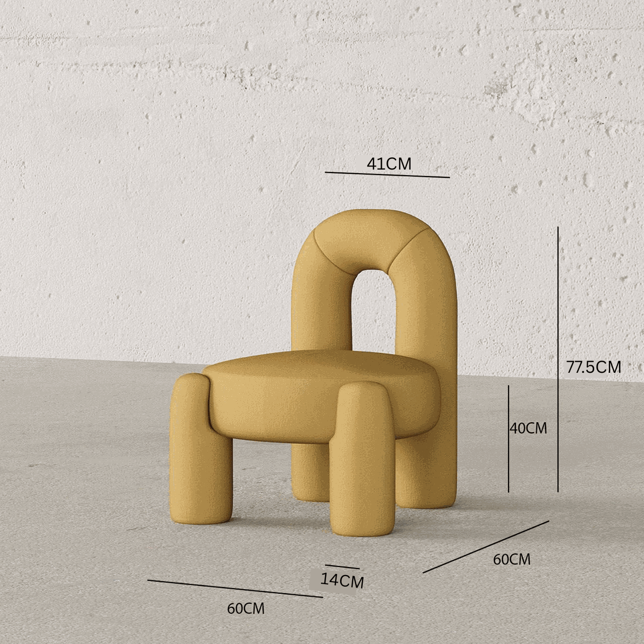 The Spidey accent chair is a playful and modern piece of furniture with a unique sculptural design. It features a curved backrest and thick, rounded legs, exuding a sense of mid-century modern charm with a contemporary twist.
