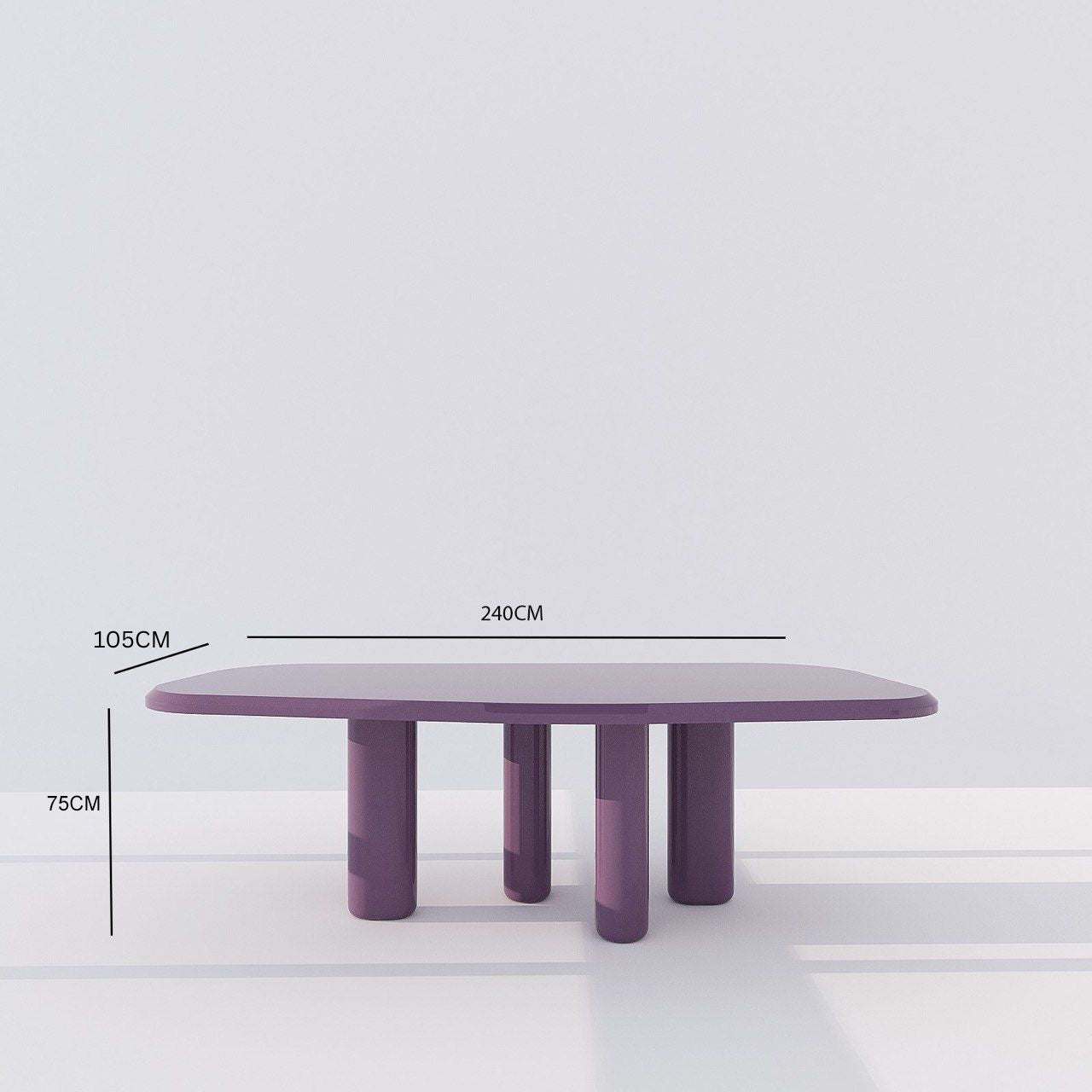 Elevate your dining experience with The Zen Dining Table. The expertly crafted curved rectangle shape, made from luxurious solid wood, Its vibrant purple color adds a pop of spring to your home while providing a sense of calm and tranquility. This table is a perfect blend of elegance and versatility.