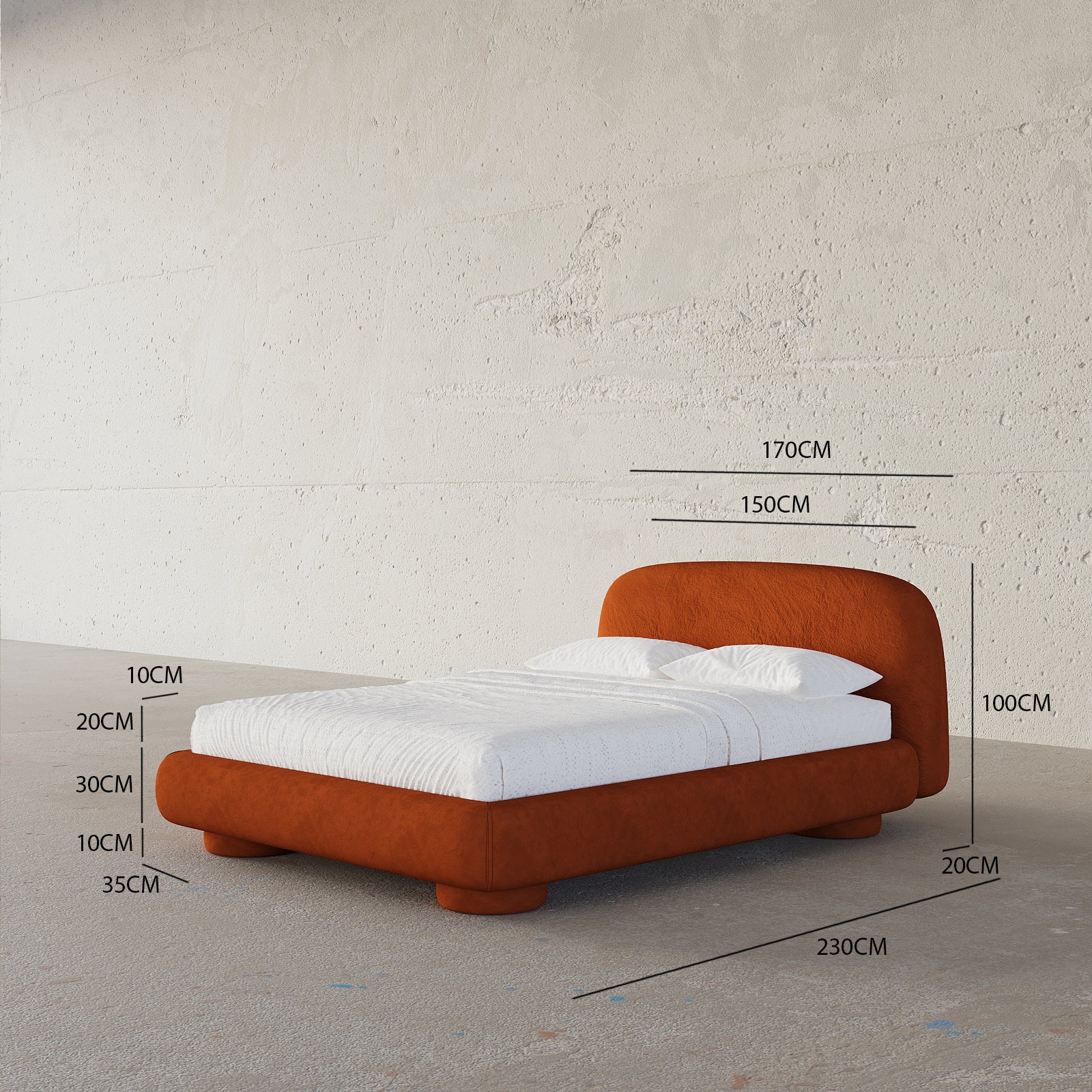 - Queen Bed: (170 x 230) cm / Mattress Size (160x200) cm