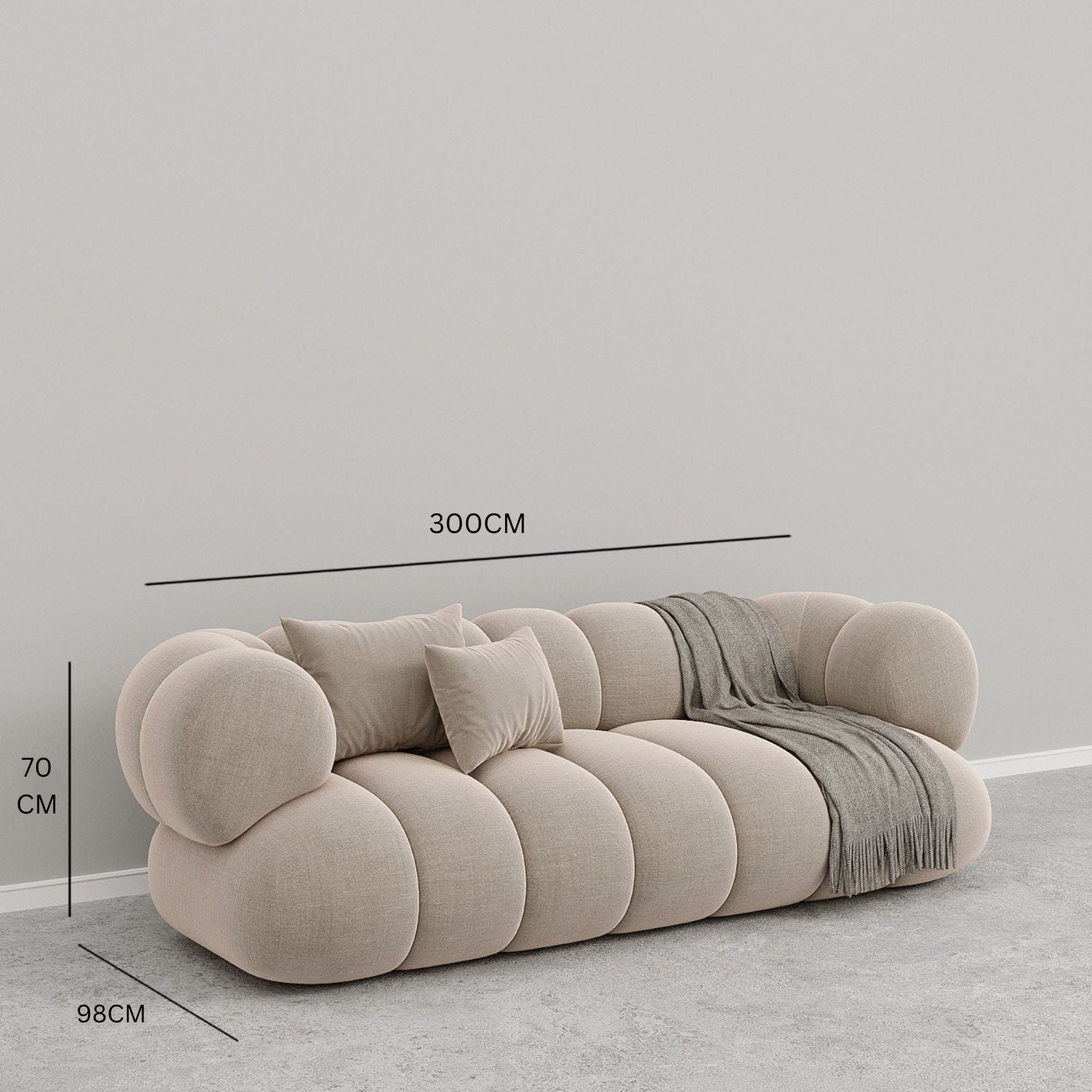 Overall Dimensions : 300 W x 98 D x 70H CM