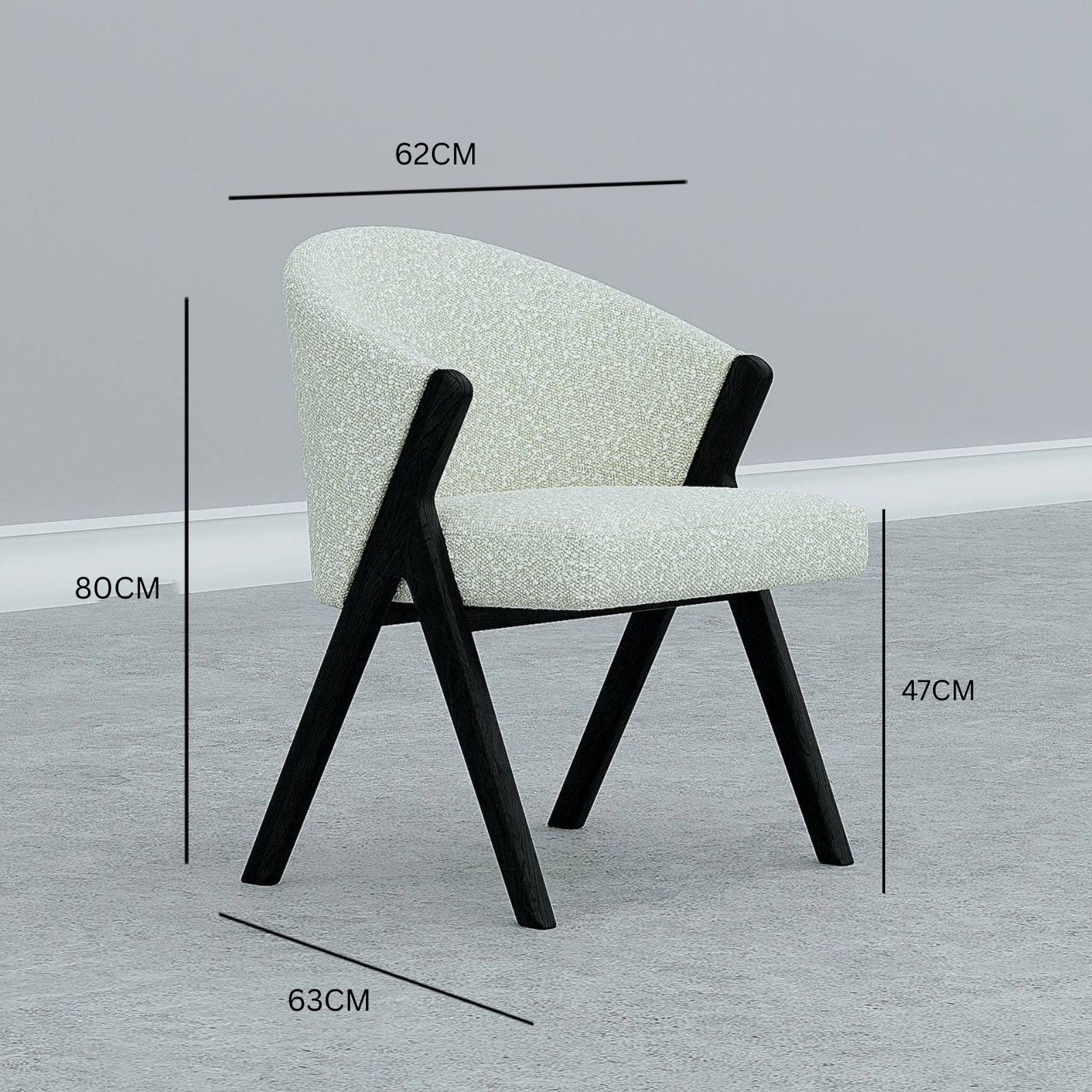 Make a statement in your home with the Bisou Armchair. This modern piece features a sleek white boucle upholstery and elegant black legs, giving it a luxurious feel. The curved backrest invites you to relax and rest your hand while the v-shaped legs add a touch of style. Perfect for any modern room.