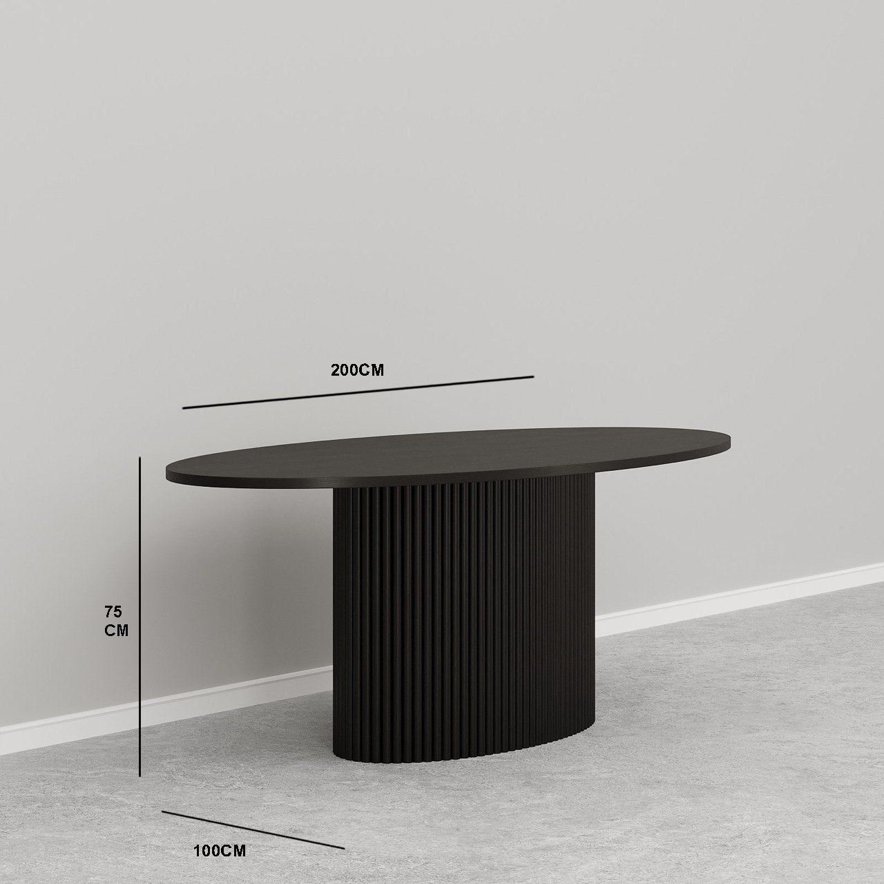 Introducing the Pomme Dining Table, a modern masterpiece in sleek black. With an oval top and base, this table adds an elegant touch to any modern home. Experience the beauty of art and functionality with this table. Elevate your dining experience with the Pomme Dining Table.