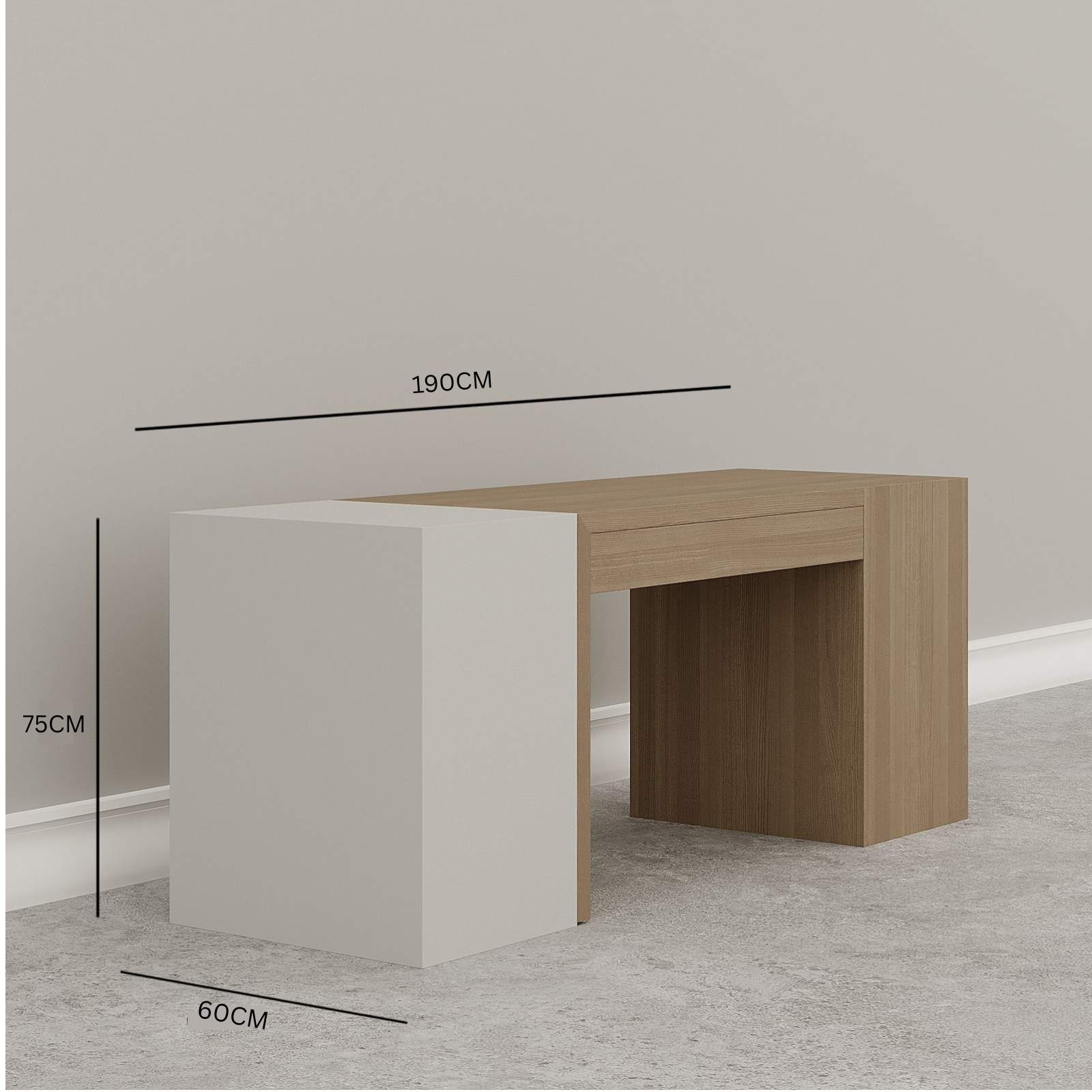 Overall Dimensions : 190 W x 60 D x 75 H CM