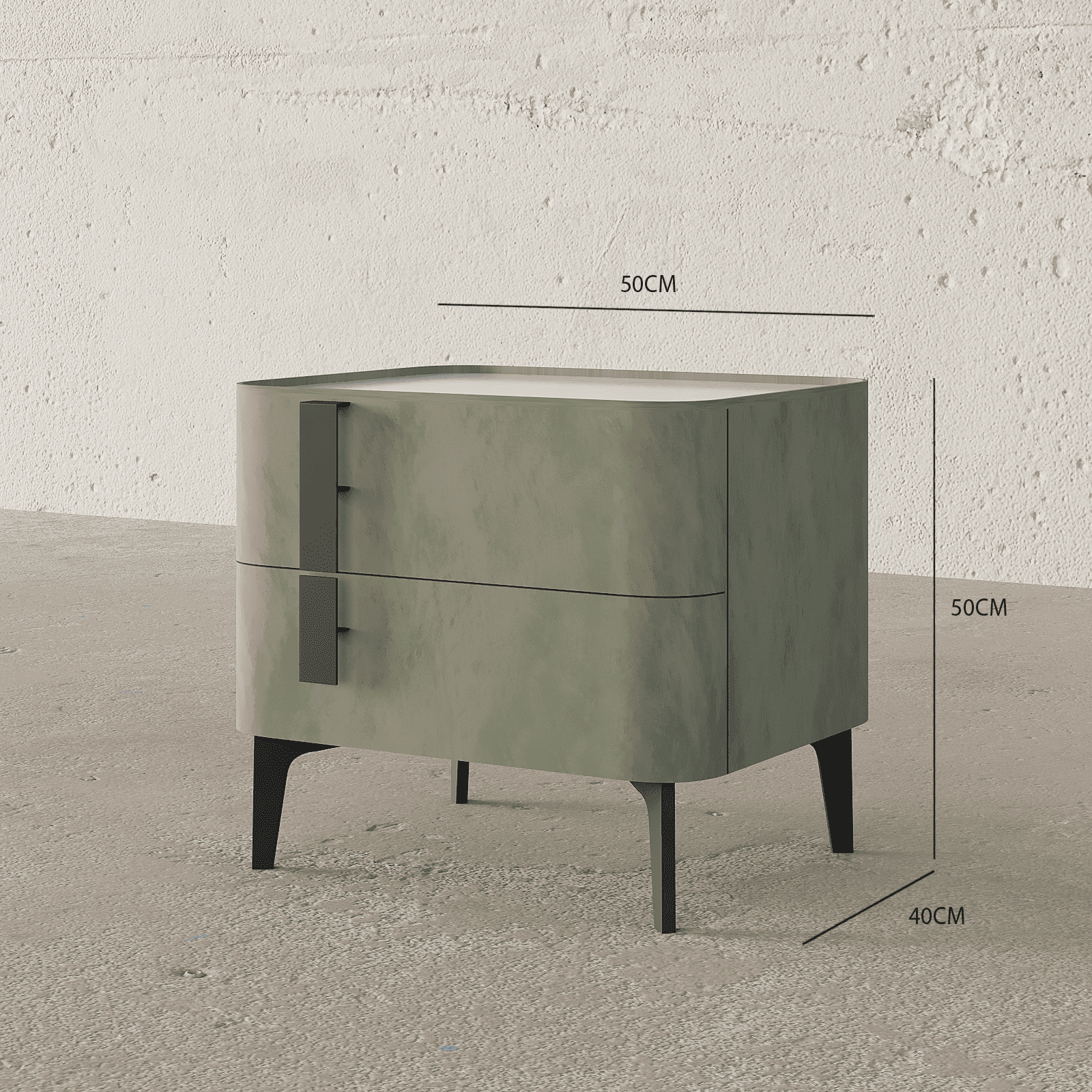 The Delia Night Stand is a modern and luxurious addition to any bedroom. With a porcelain top, MDF wood frame, and a sleek metal base, this night stand exudes sophistication. The delicate handle adds a touch of elegance, making it the perfect choice for a contemporary bedroom setting. Available in white and green.