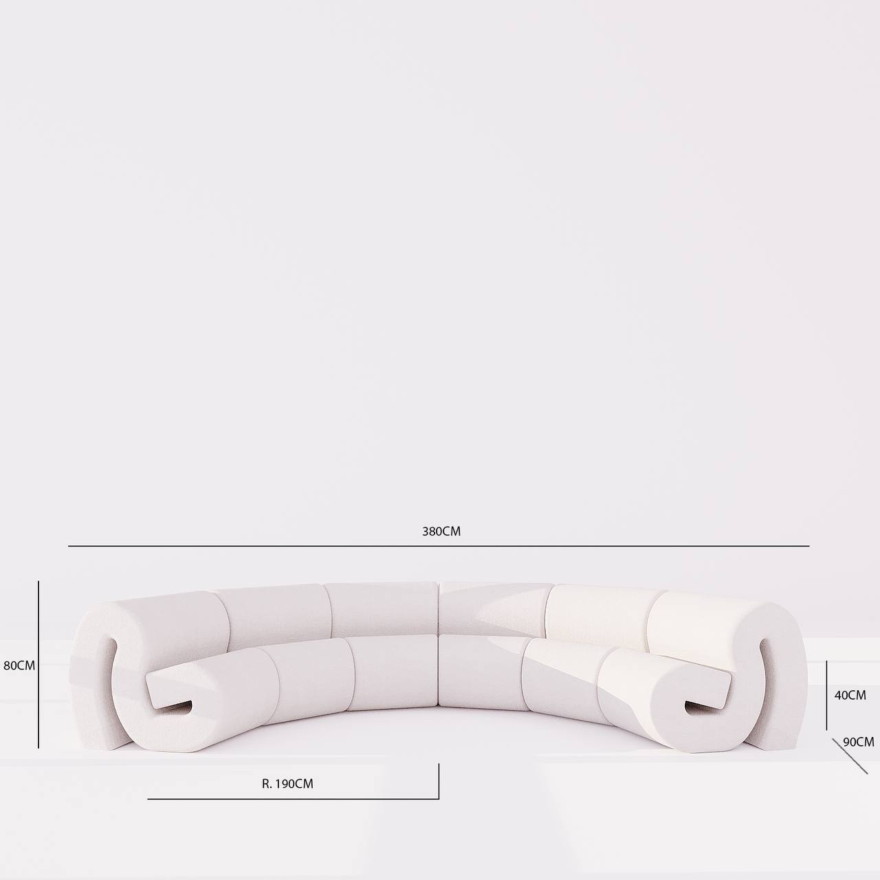 Introducing the Pluffy Sofa, a modern luxury piece designed for those with exquisite taste. Its curved design and shape add a touch of elegance to any room, while the white cotton blend offers both comfort and style. Perfect for entertaining, this sofa comfortably seats five to six people, making it the ideal addition to your spacious home.