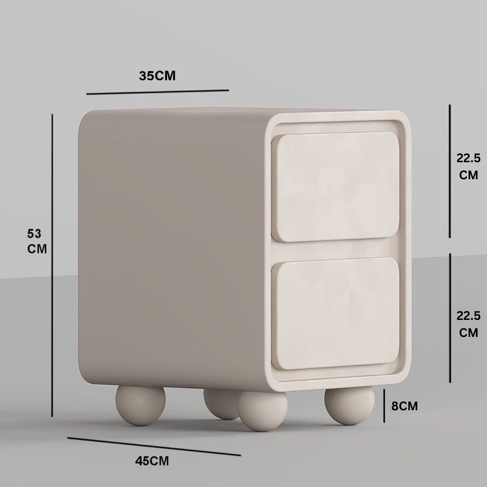 Introducing the Allora Night Stand, a modern and elegant addition to any bedroom. Crafted from high-quality MDF wood, this nightstand comes in a luxurious off-white color. It features two drawers for ample storage and a convenient shelf for your books or trinkets. Bring sophistication and style to your bedroom with the Allora Night Stand.