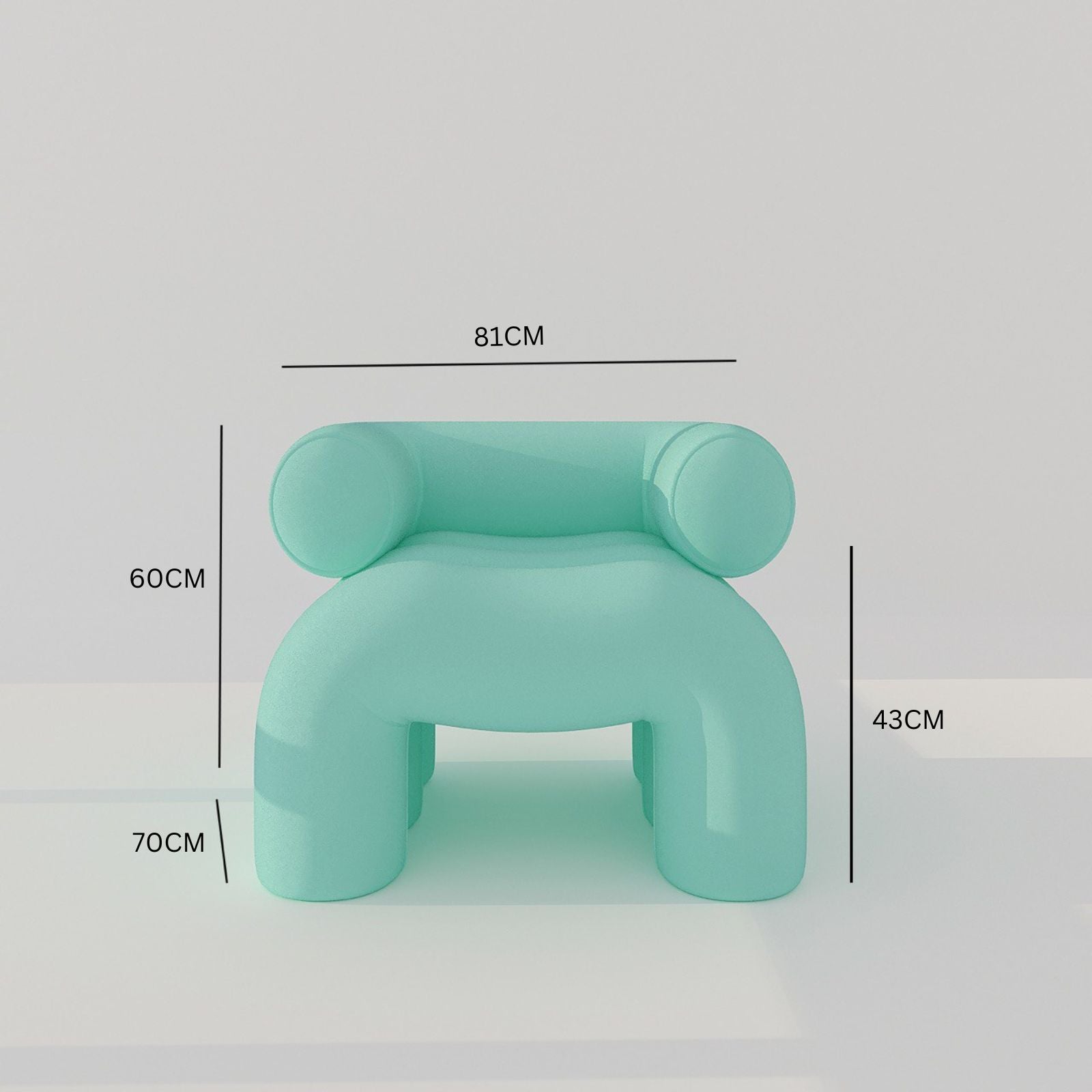 A Futuristic Design, That's The Omni Simply Put. Crafted with premium ice blue plain velvet, Its soft color captivates the eye, invoking a sense of intense energy and vitality, this modern armchair features elegantly curved arms and a uniquely shaped seat for added style and comfort. Elevate your living space with this beautiful sophisticated art piece.