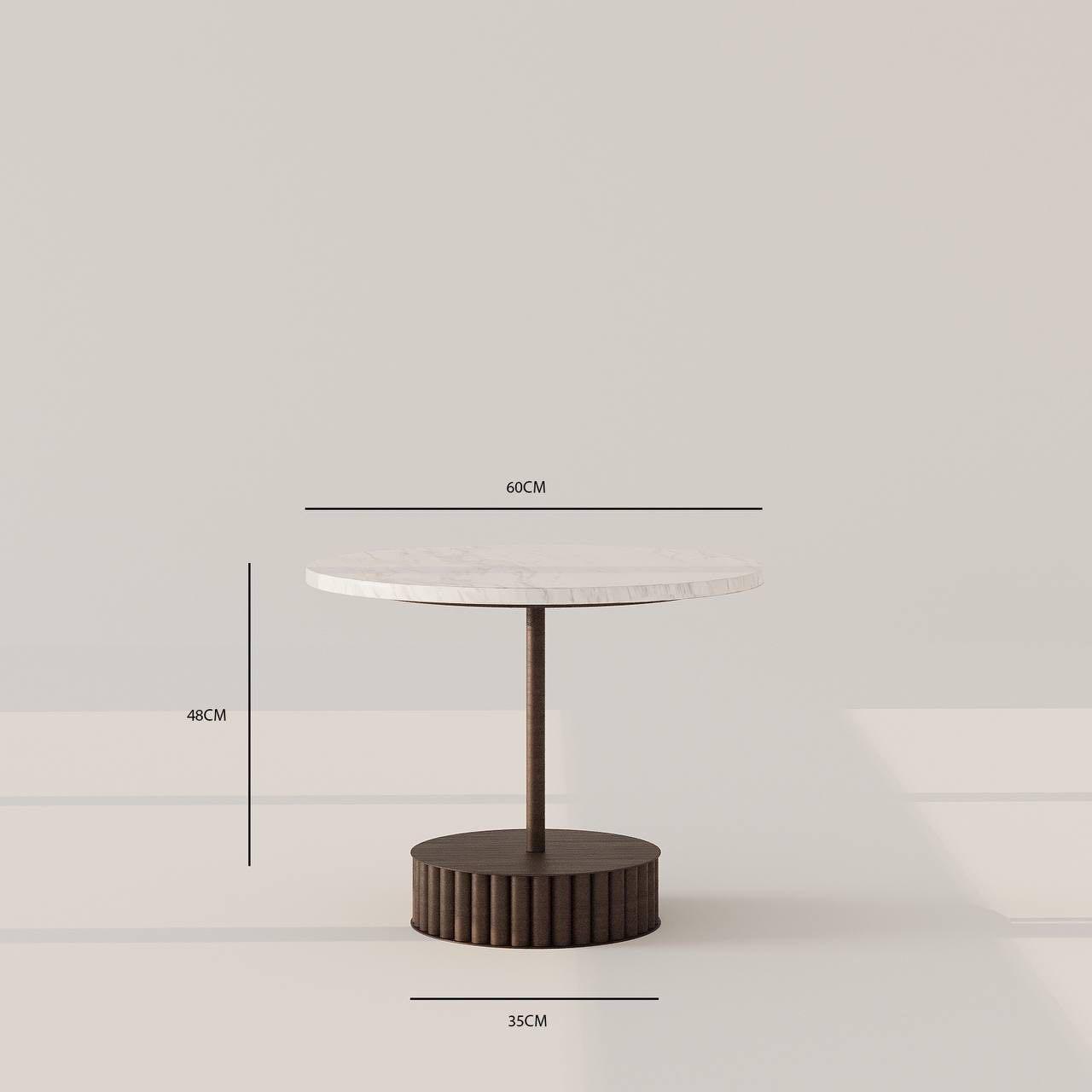Introducing Yanni, the epitome of modern luxury. Crafted with a marble veneer top and walnut solid wood base, its unique notches add a touch of sophistication. The perfect addition to any modern living room, Yanni brings elegance and style.