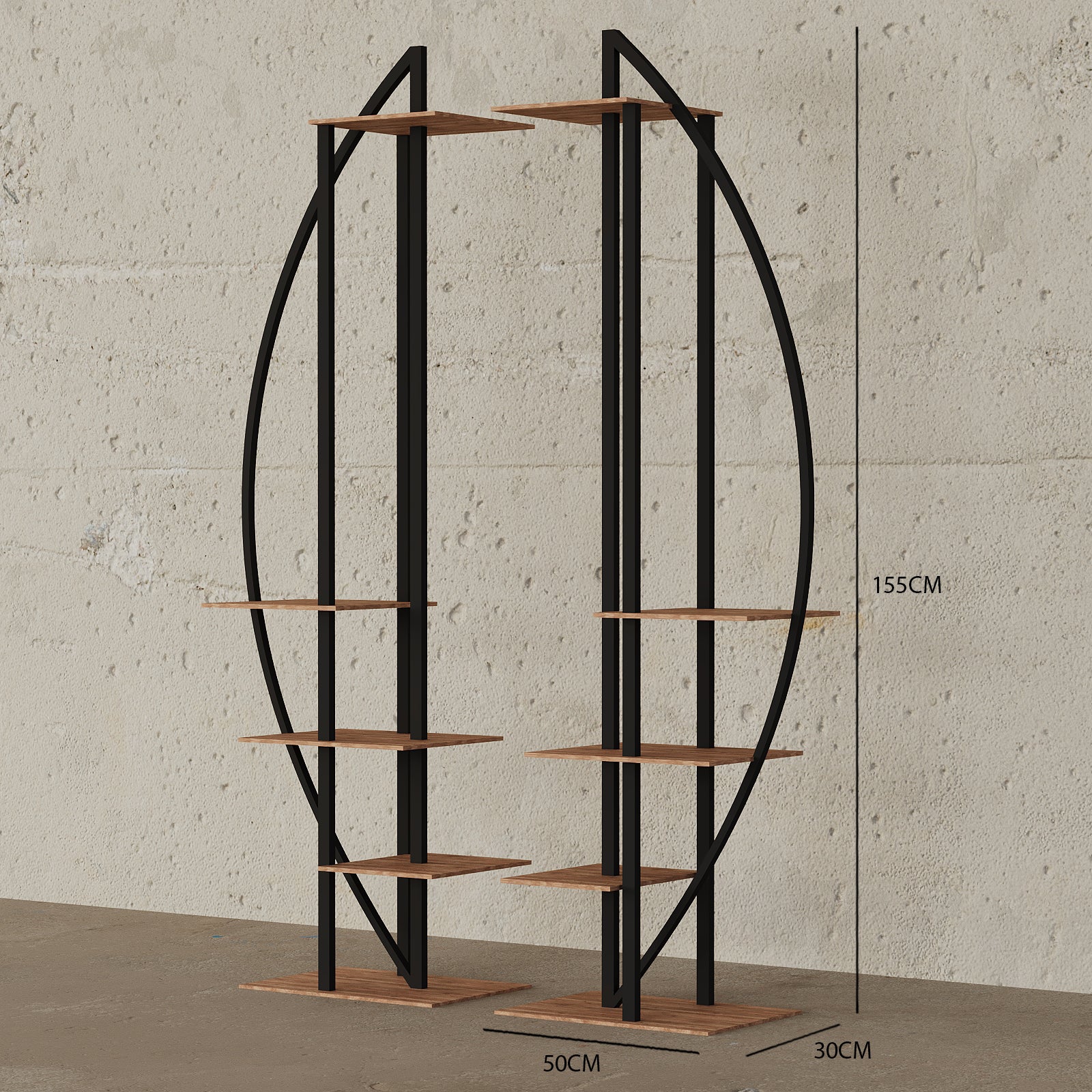 Introducing the exquisite Borna Shelving Unit, crafted from solid wood in a sleek, modern design. Available in a rich brown hue and unique arched shape, this unit features ten open shelves to beautifully display your plants. Elevate your space with this luxurious addition.