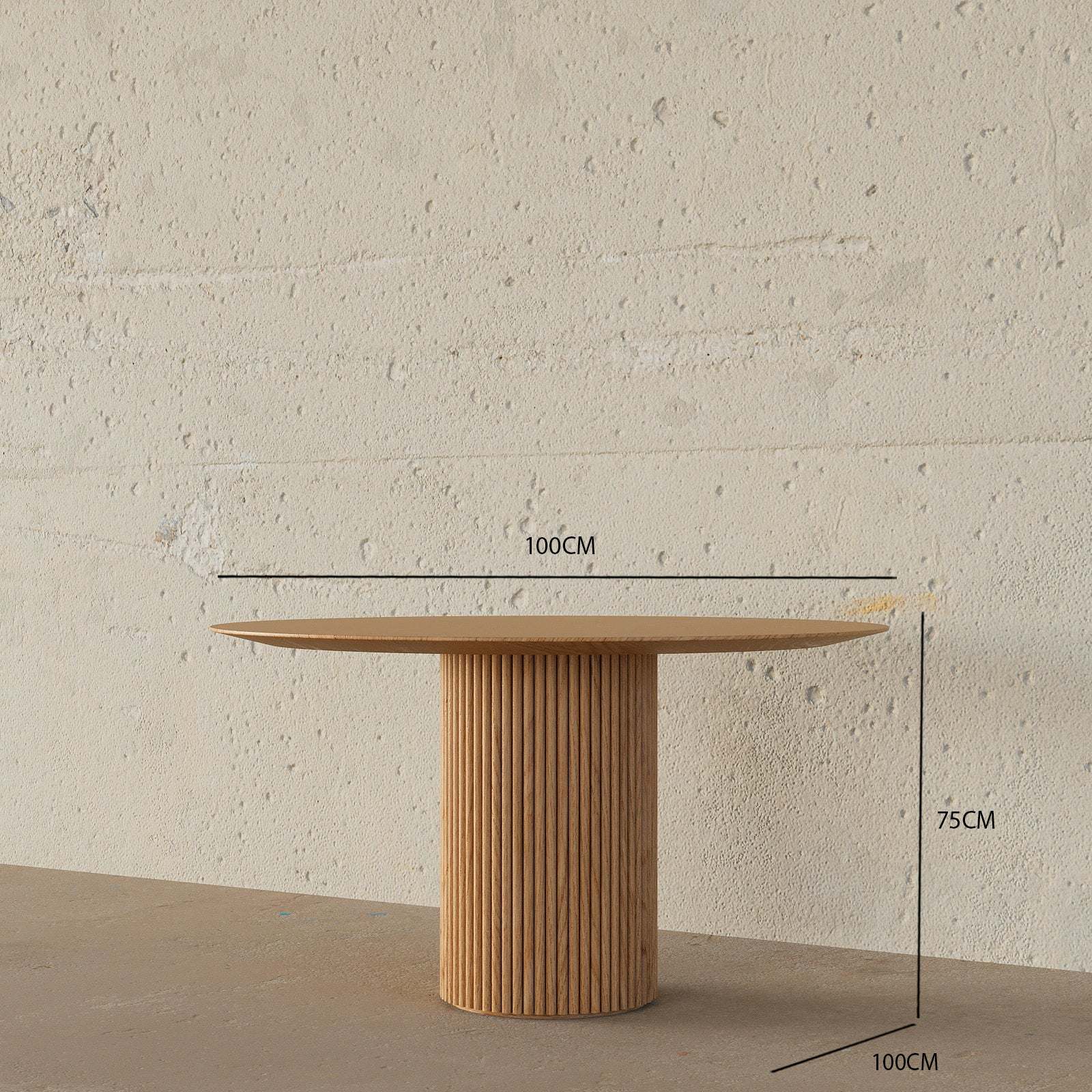 The Fabian dining table blends modern design with timeless simplicity, creating a captivating centerpiece for any dining area. Its circular surface and sturdy white oak pedestal base offer both elegance and stability, making it ideal for gatherings and everyday meals. This table brings a refined yet bold touch to your home decor.