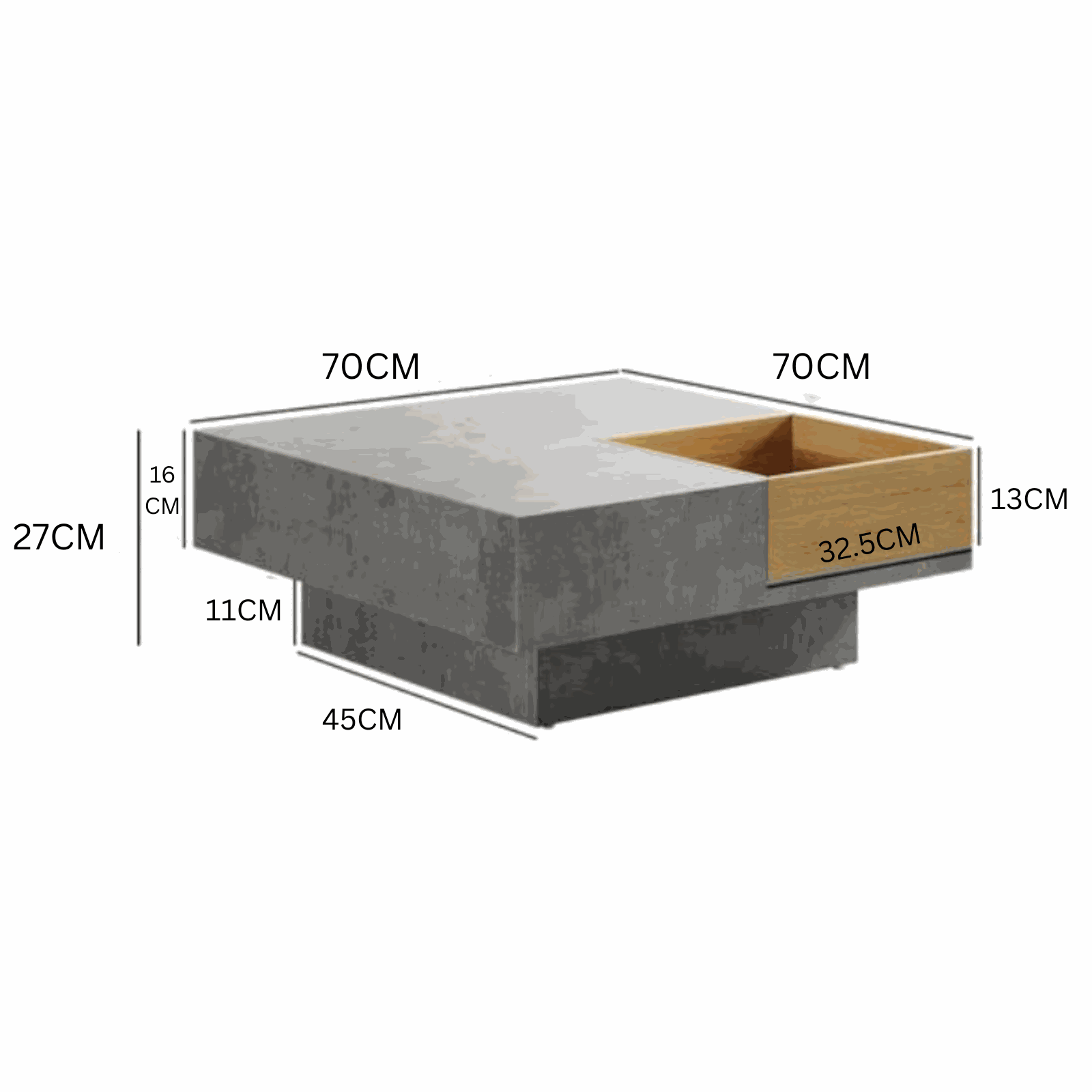 - Color : Grey Concrete + Natural Wood Finish