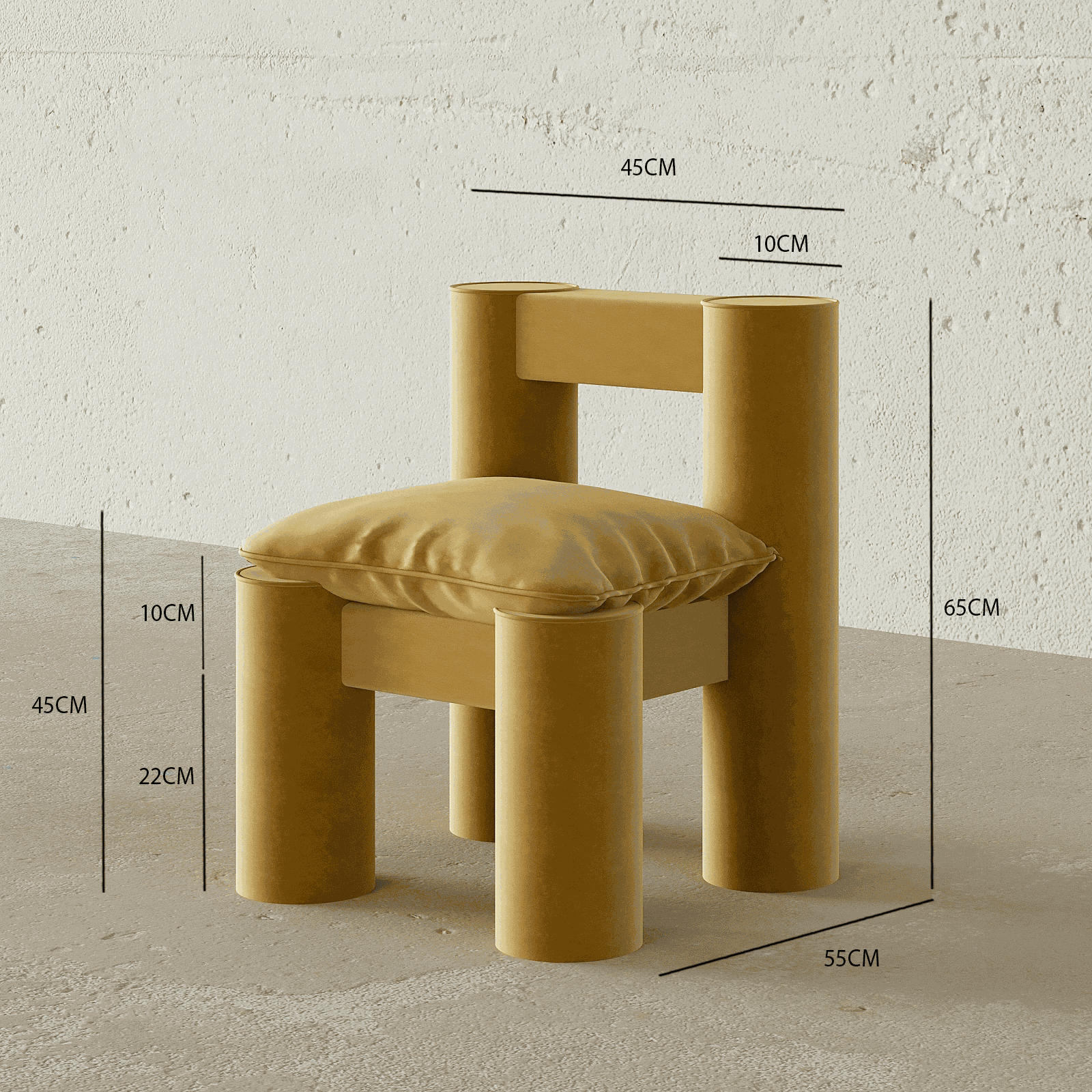 - Vibrant yellow velvet upholstery for a touch of luxury and comfort